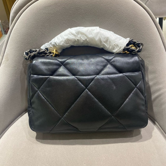 Pre-owned Certified Chanel Small 19Bag in Black Lambskin with Golden Hardware, 2019-2020, w/ full set