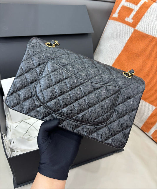 Pre-owned Certified Chanel Medium CF Double Classic Flap Black Caviar Leather with Golden Hardware, 2016-2017, w/ full set