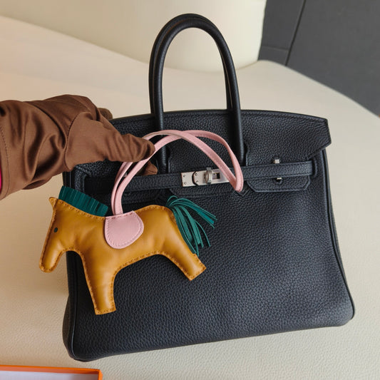 Pre-owned Certified Hermes Kelly Twilly Bag Charm in Black Swift Leather with Golden Hardware, w/ box