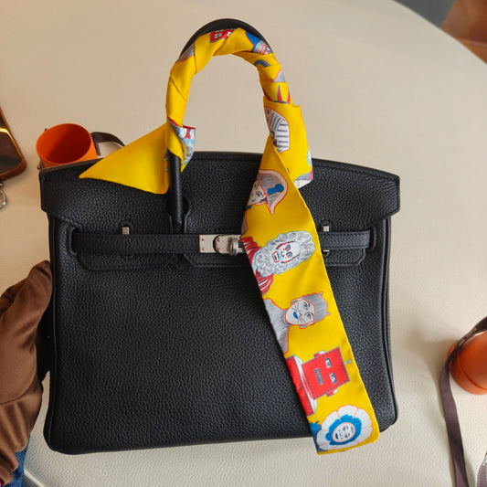 Pre-owned Certified Hermes Silk Twilly “Hermes Dress Code” in Yellow, w/box