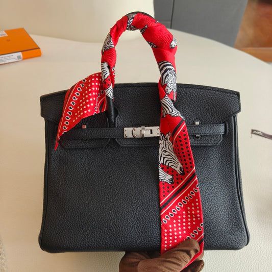Pre-owned Certified Hermes Silk Twilly “Less Zebres” in Red and White, w/box