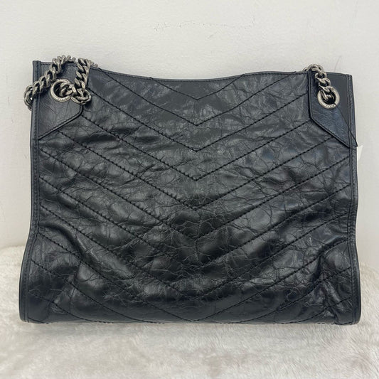 Pre-owned Certified Saint Laurent YSL Niki Shopping Bag Black Crinkled Vintage Calfskin with Silver Hardware, 2019, w/ dust bag