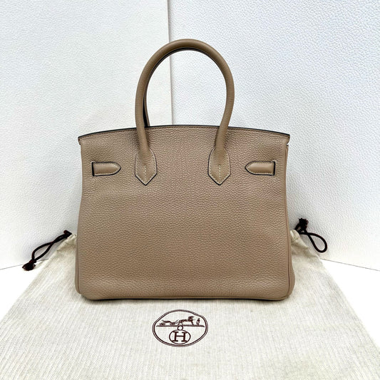 Pre-owned Certified Hermes Birkin 30 in Etoupe 18 Togo Leather with Golden Hardware, 2011, w/ lock&key, dust bag