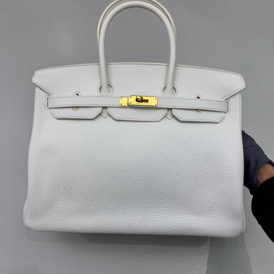 Pre-owned Certified Hermes Birkin 35 in Blanc Togo Leather with Golden Hardware, 2011, w/ lock & key, dust bag