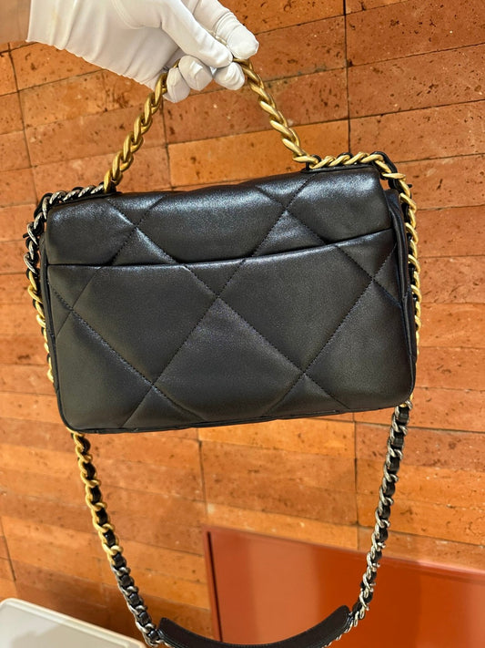 Pre-owned Certified Chanel Small 19Bag Black Lambskin Golden hardware, microchipped, w/ Full set - box, dust bag