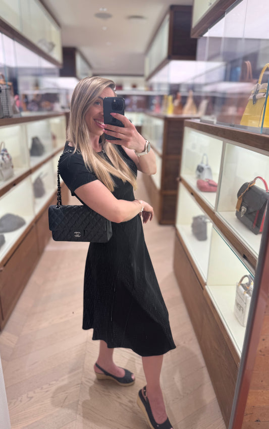 Pre-owned Certified Chanel Classic Flap Medium in Shimmery Black Caviar Leather with Black Shiny Hardware, 2018, Full Set