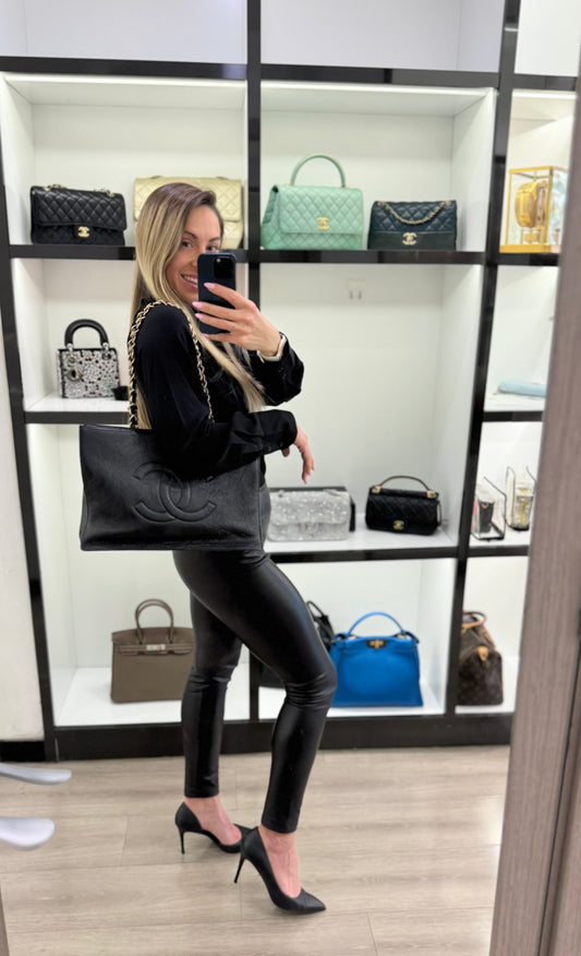 Pre-owned Chanel Classic Shopper Tote Shiny Calfskin Golden Hardware, 2020-2021, w/ card