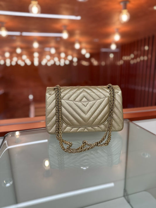 Pre-owned Chanel 2.55 Reissue Small Flap Golden Chevron Quilted, w/ card
