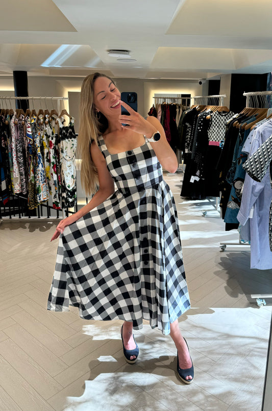 Pre-owned Dolce & Gabbana Long Summer Dress Black & White checkers, Size 38