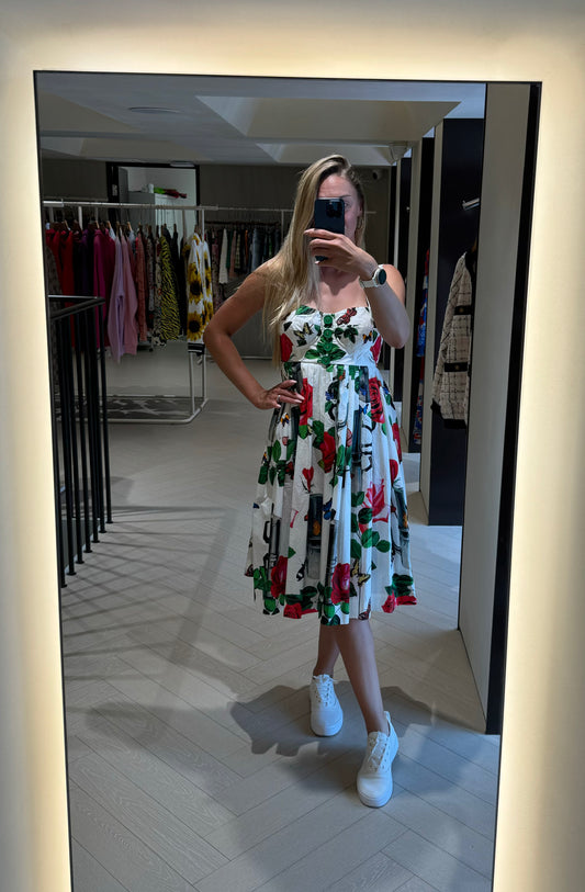 Pre-owned Dolce & Gabbana Long Summer Dress White with Floral Print, New without tags, Size 40