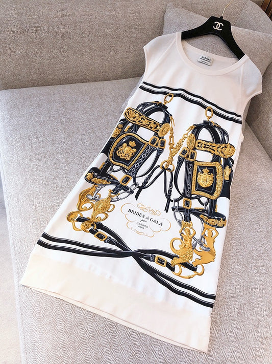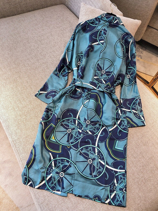 Pre-owned Hermes Silk Long Shirt Dress with Wheels Pattern, size 34