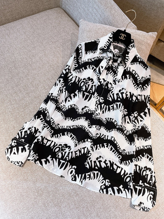 Pre-owned Valentino Special Edition Black & White Valentino Logo Print Silk Shirt, Size 36, New not used