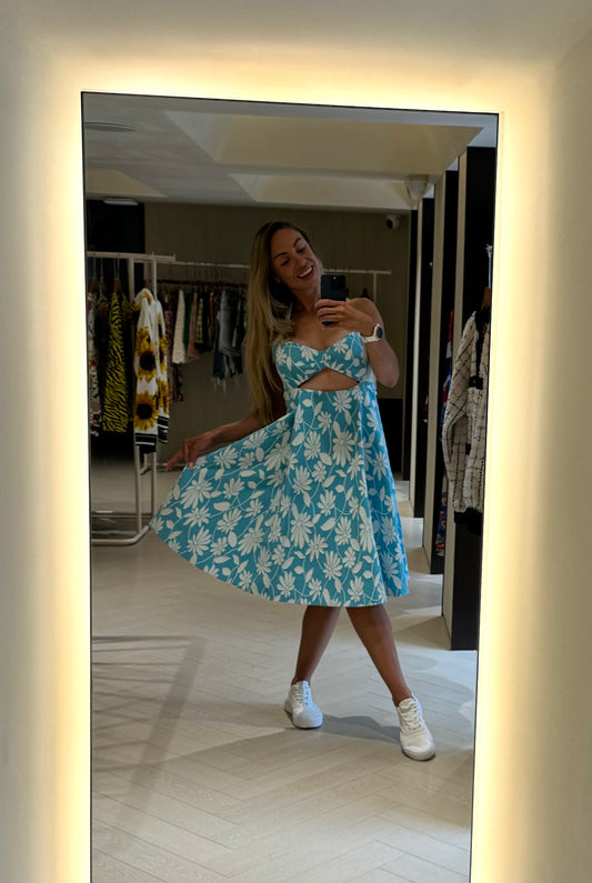 Pre-owned Not Used with Tags MiuMiu White and Blue Summer Dress, Size 42