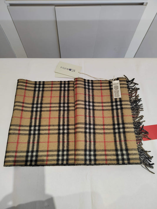 Pre-owned Certified Not Used Burberry Cashmere Scarf, Two-sided Tartan Checkers with Grey, 168x30cm, w/ store tags