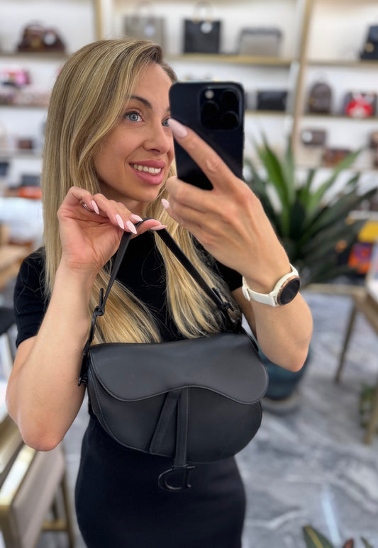 Pre-owned Certified Dior Saddle Medium So Black Matte Calfskin, 2022, w/ dust bag