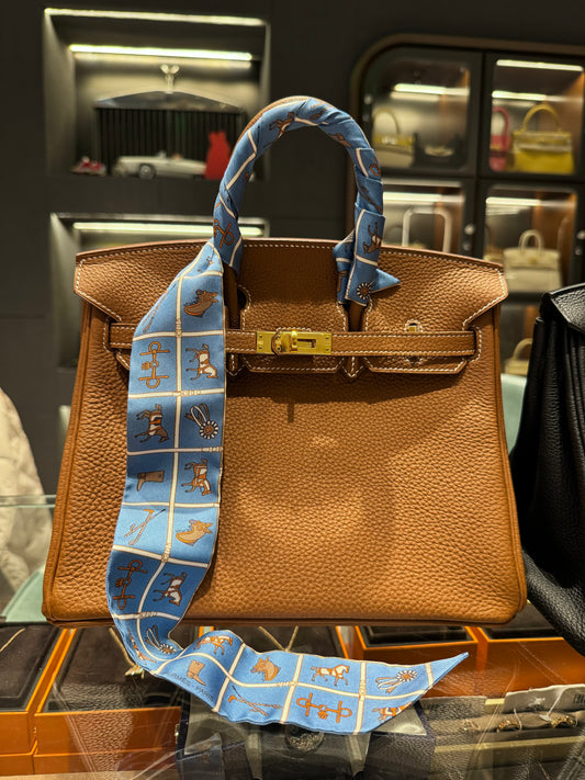Not Used Hermes Silk Twilly Blue with Browns, w/ box