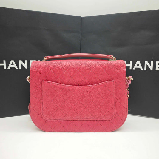 Pre-owned Certified Chanel Coco Cuba Flap Top Handle Coral Red Caviar Leather Golden Hardware, 2018, w/ Chanel box, dust bag