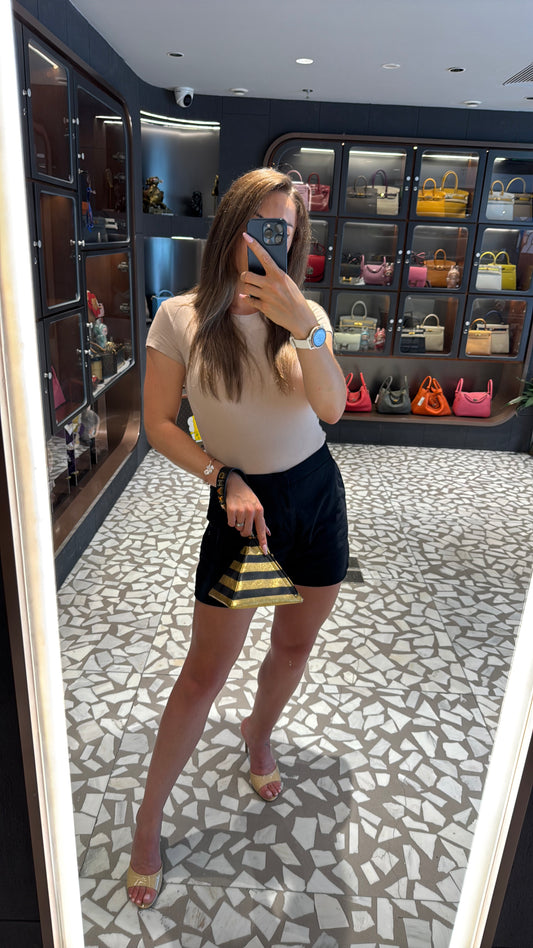 Pre-owned Certified Chanel Kheops Pyramid Bag in Gold and Black Lambksin with Golden Hardware, 2019 pre-fall, w/ card, dust bag