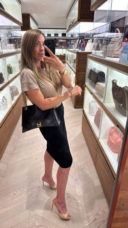 Pre-owned Certified Balenciaga Crush Chain Bag Medium Black Crushed Calfskin Golden Hardware, w/ dust bag