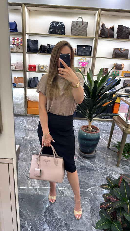 Pre-owned Certified Prada Monochrome Tote Nude Pink Saffiano Leather, w/ dust bag, strap