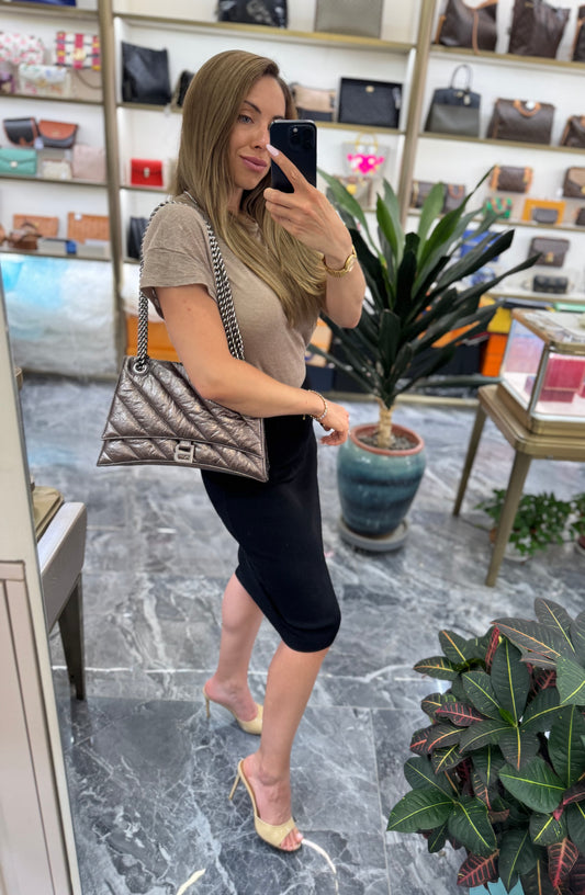 Pre-owned Certified Balenciaga Crush Chain Bag Medium Golden Metallic Quilted Calfskin, w/ tags, dust bag