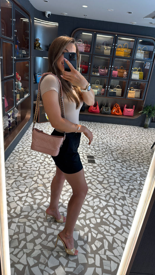 Pre-owned Certified Chanel Gabrielle Hobo Small Sakura Pink Aged Calfskin, mid-2019, w/ Full Set - Chanel box, dust bag, Chanel card