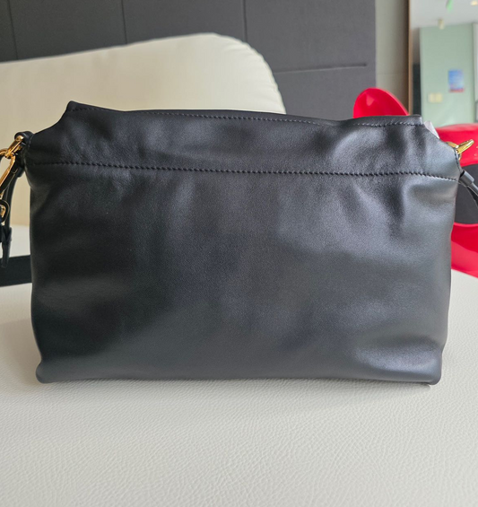 Pre-owned Certified Fendi Mamma Baguette Black Calfskin with Golden Hardware, w/ dust bag, two straps