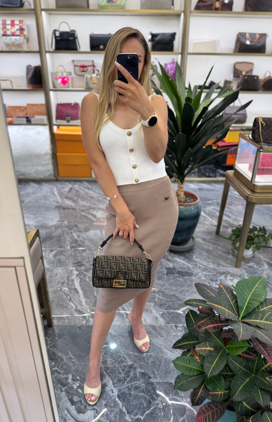 Pre-owned Certified Fendi Baguette Medium Zucca Monogram Canvas, w/ strap, top handle, dust bag