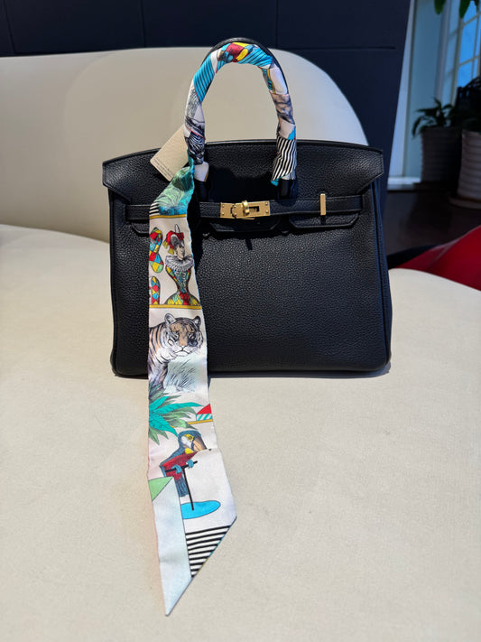 Not Used Hermes Silk Twilly "Grand Theatre" with red, w/ box