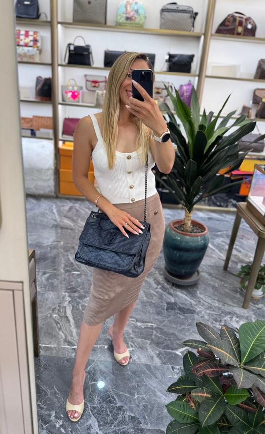 Pre-owned Certified Saint Laurent Large Niki Vintage Calfskin Navy Blue with Dark Silver Hardware, 2018, w/ dust bag