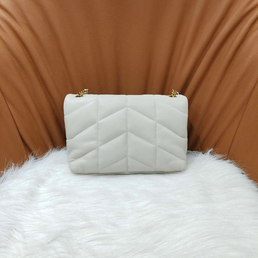 Pre-owned Certified YSL Saint Laurent Loulou Puffer Off White Lambskin Golden Hardware, 2023, w/ dust bag