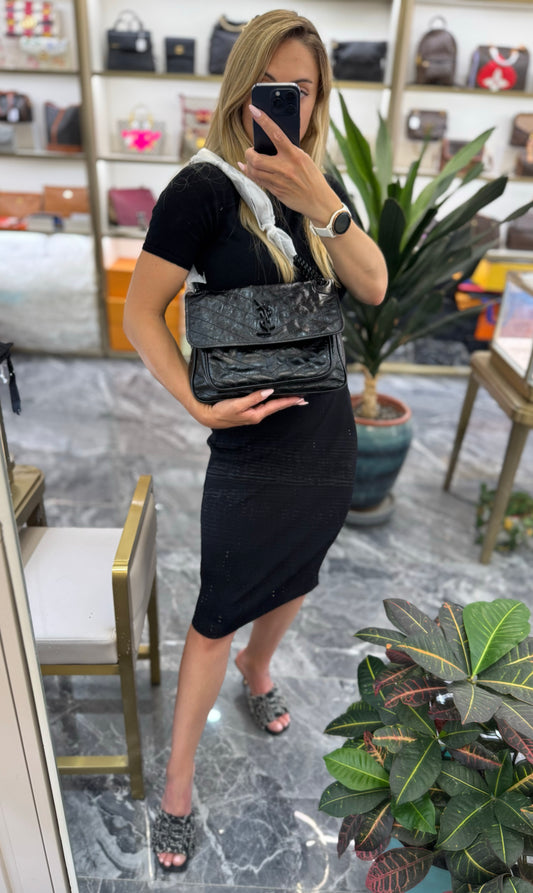 Pre-owned Certified Saint Laurent YSL Niki Medium So Black Shiny Vintage Calfskin, 2019, w/ dust bag