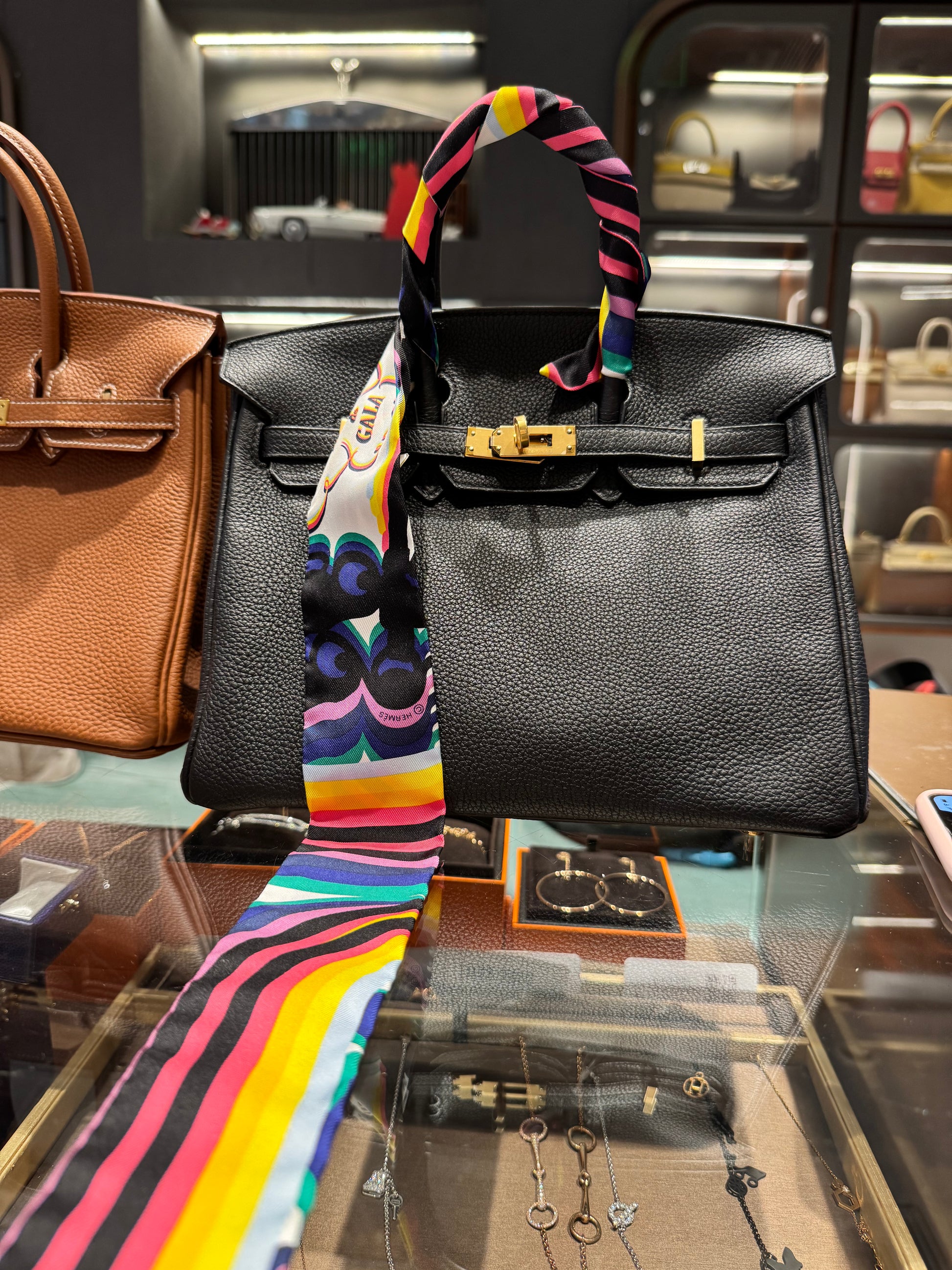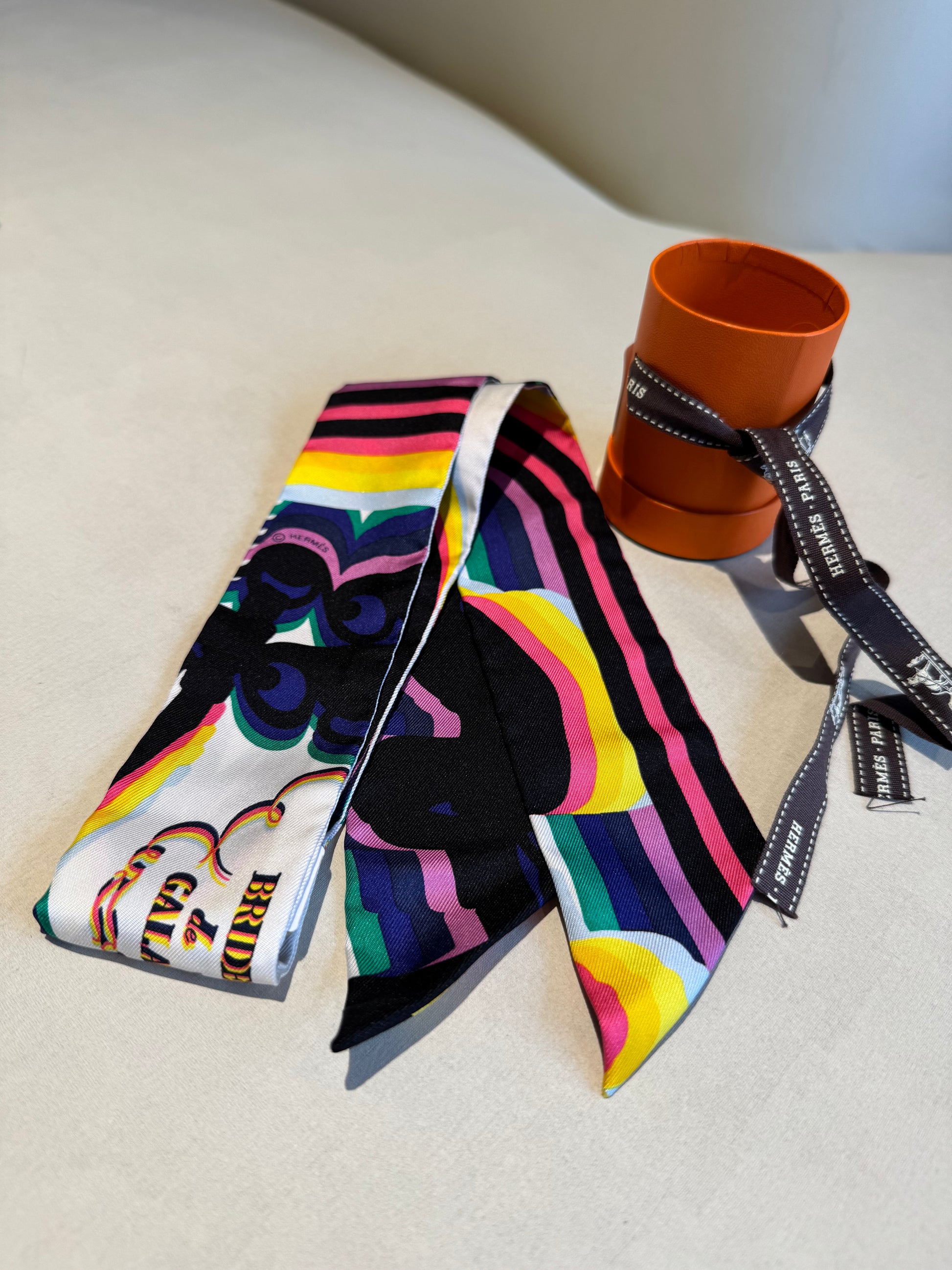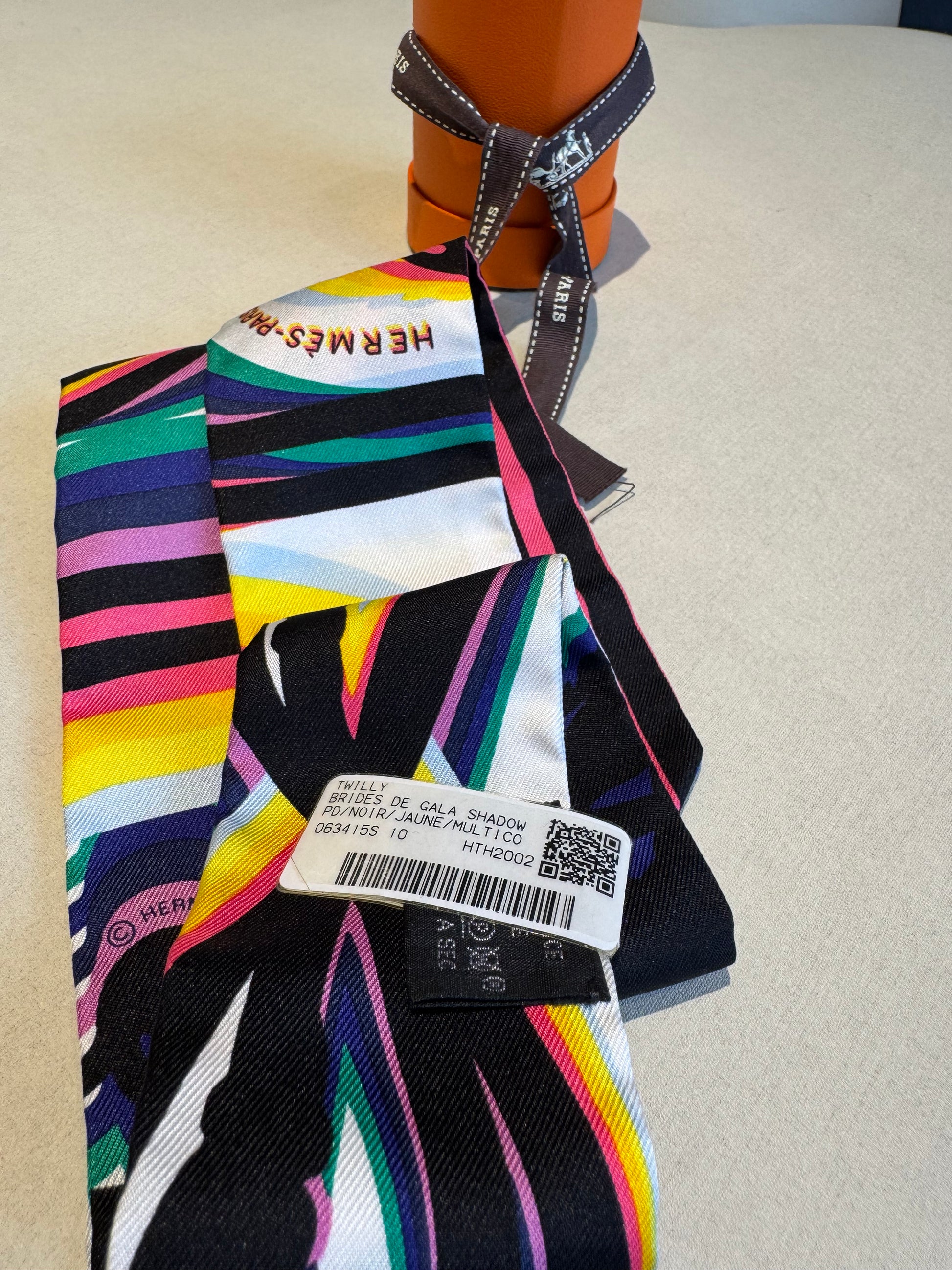 Not Used Hermes Silk Twilly "Brides De Gala Shadow", w/ box