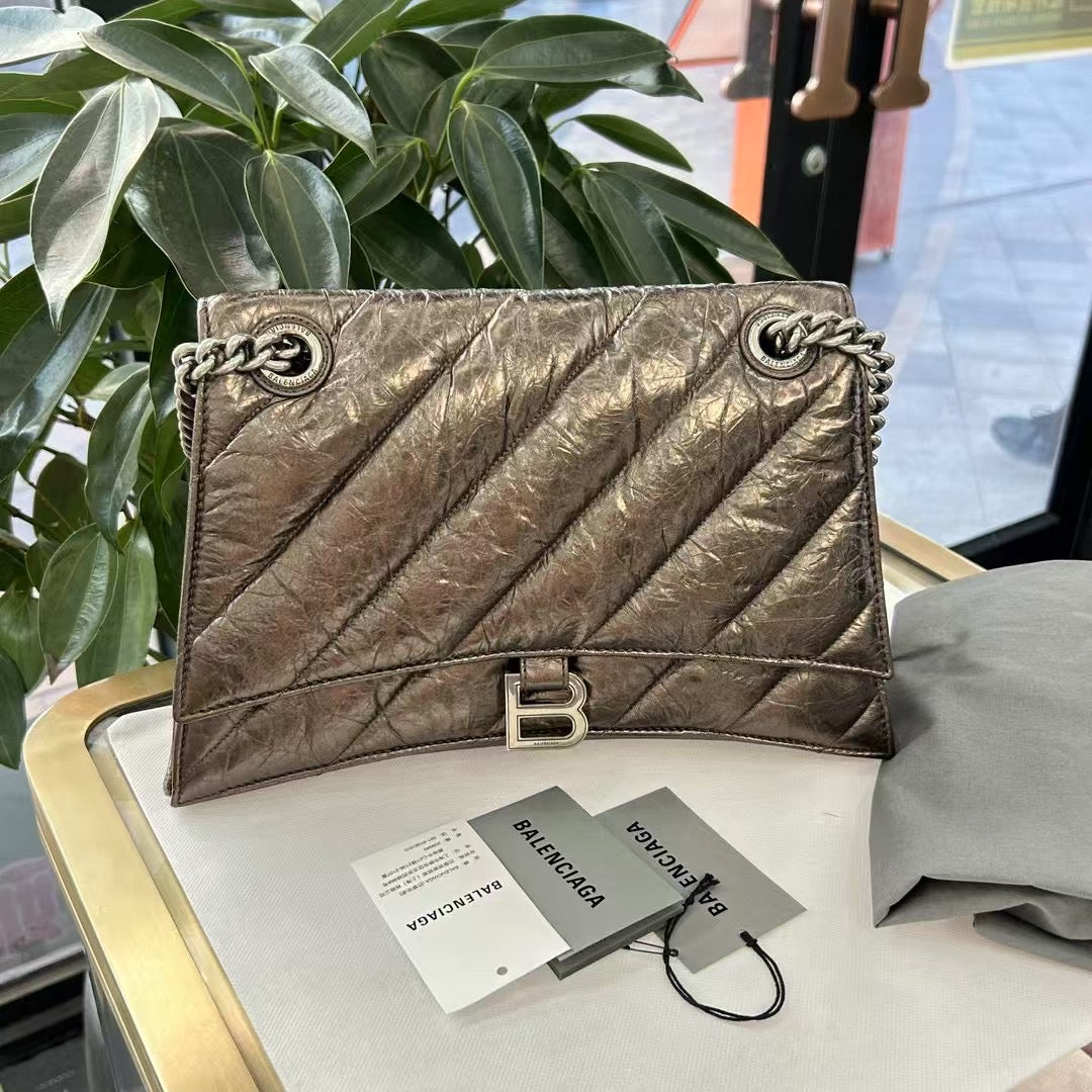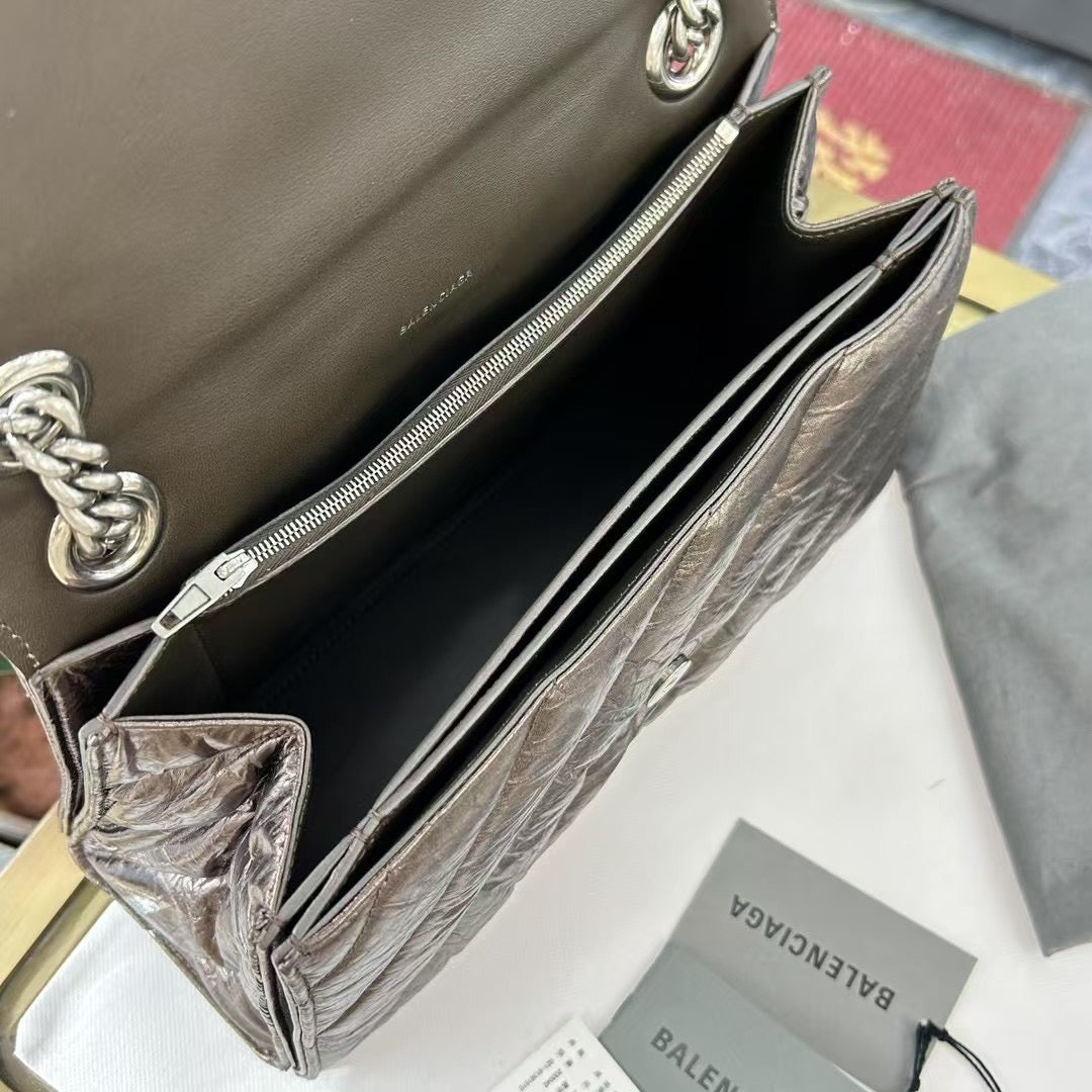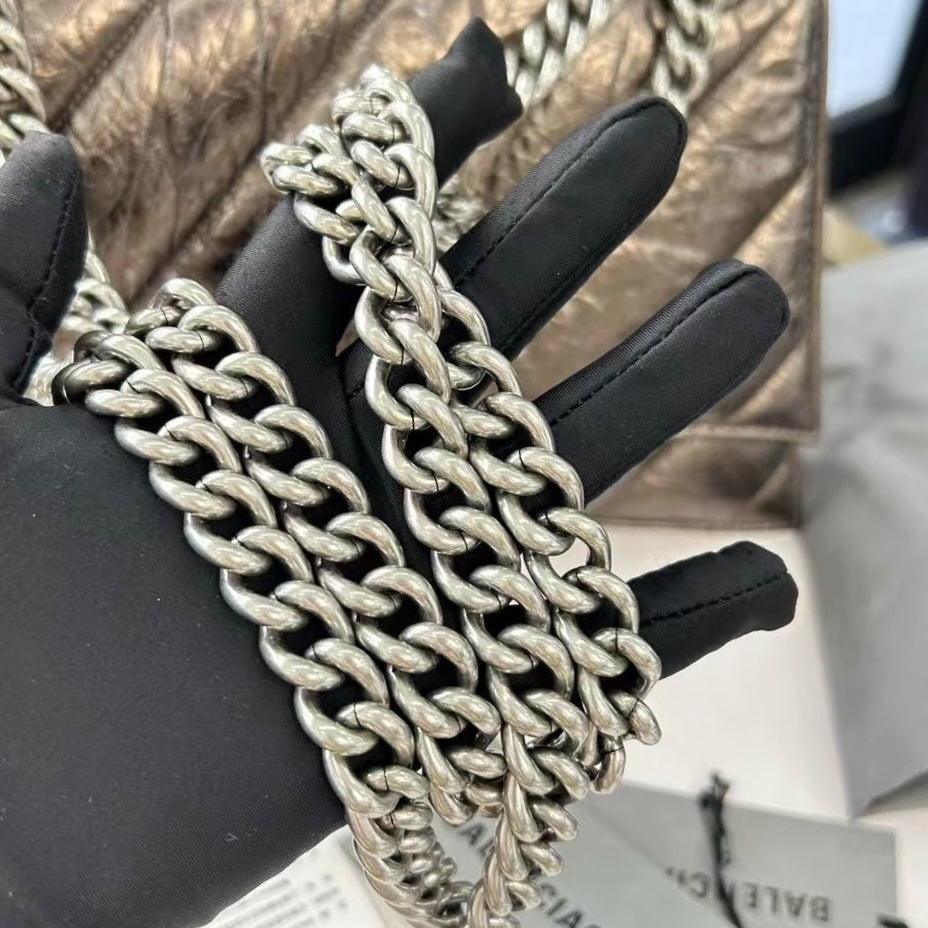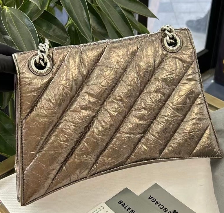 Pre-owned Certified Balenciaga Crush Chain Bag Medium Golden Metallic Quilted Calfskin, w/ tags, dust bag