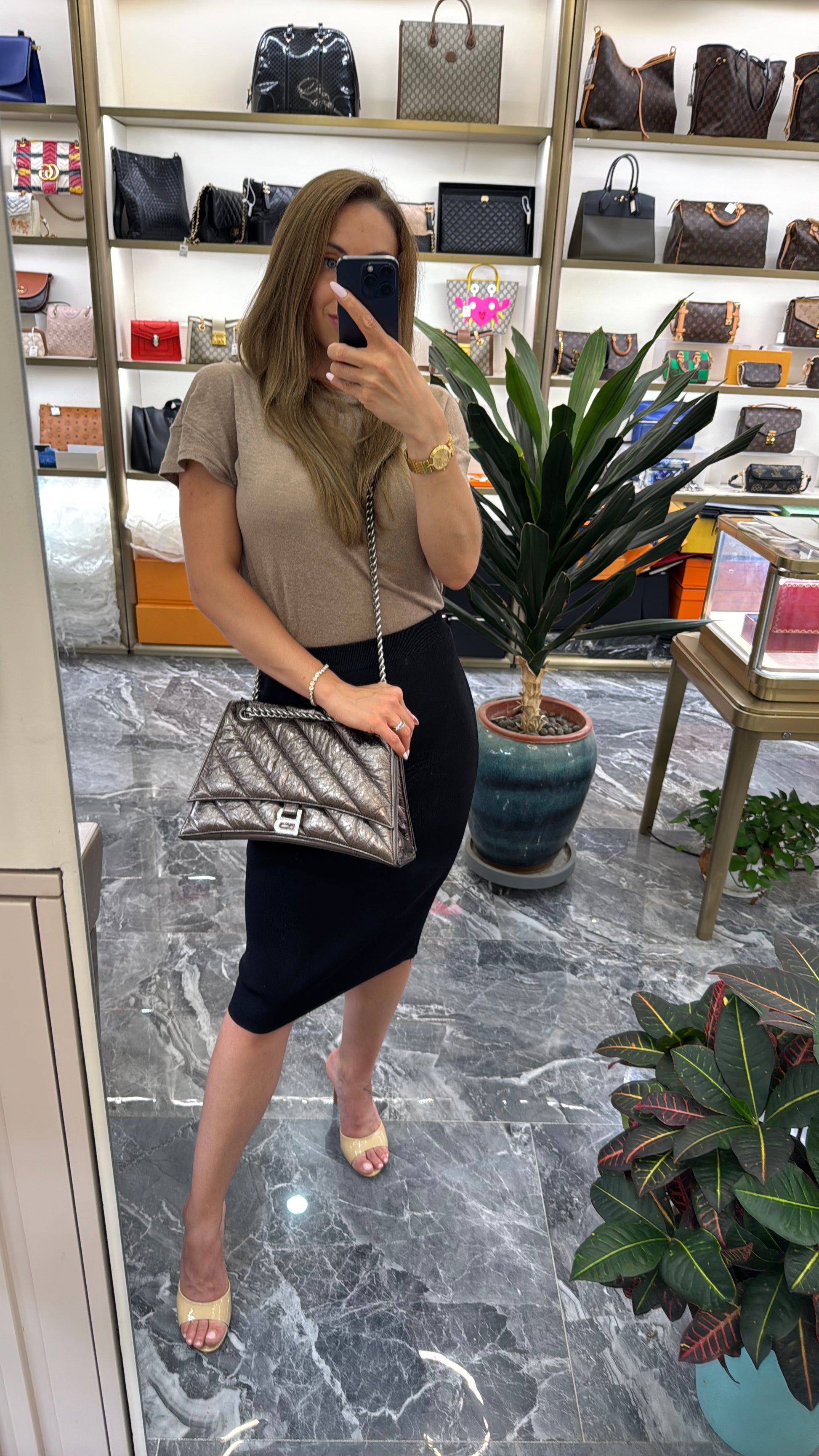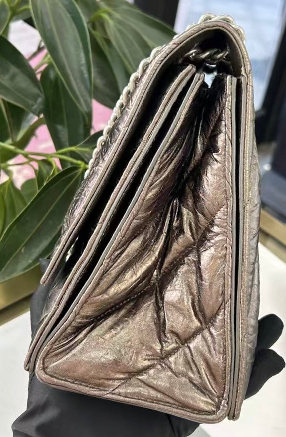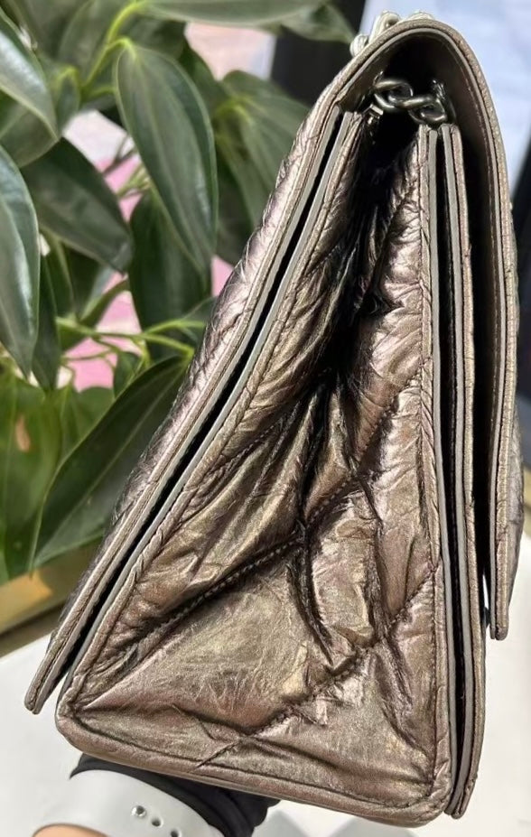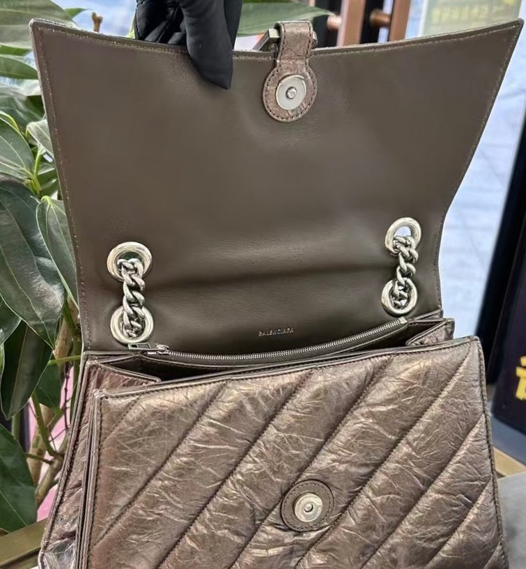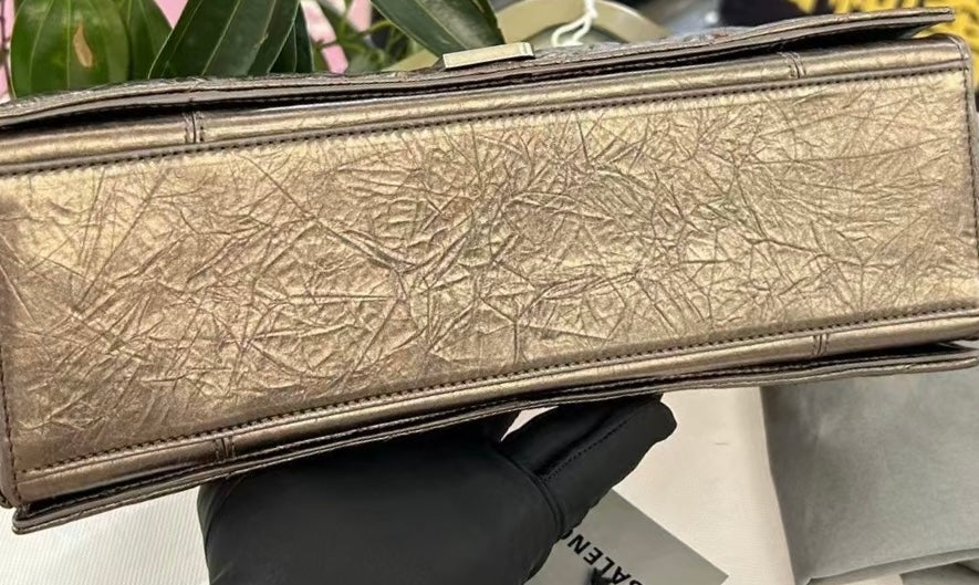Pre-owned Certified Balenciaga Crush Chain Bag Medium Golden Metallic Quilted Calfskin, w/ tags, dust bag