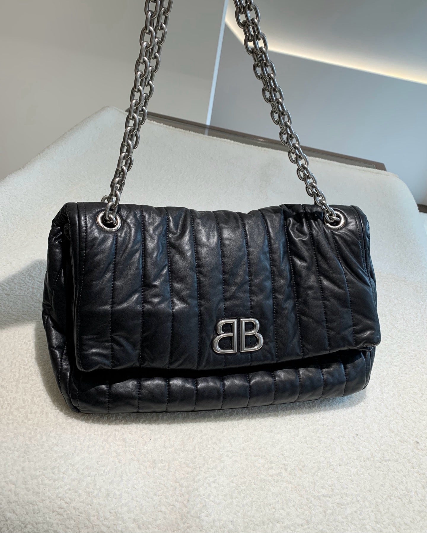 Pre-owned Certified Balenciaga Monaco Quilted Thin Calfskin Aged Silver Hardware, w/ dust bag