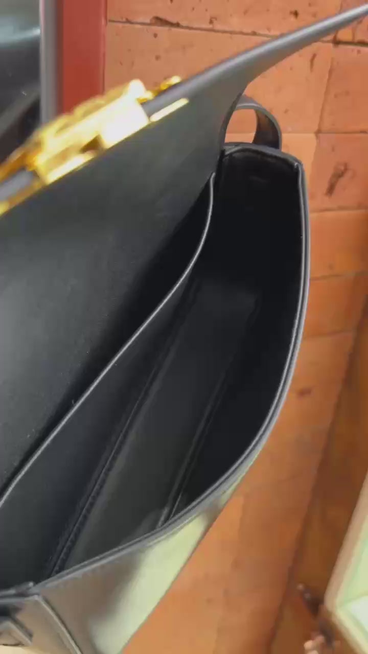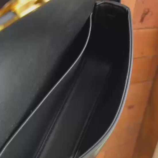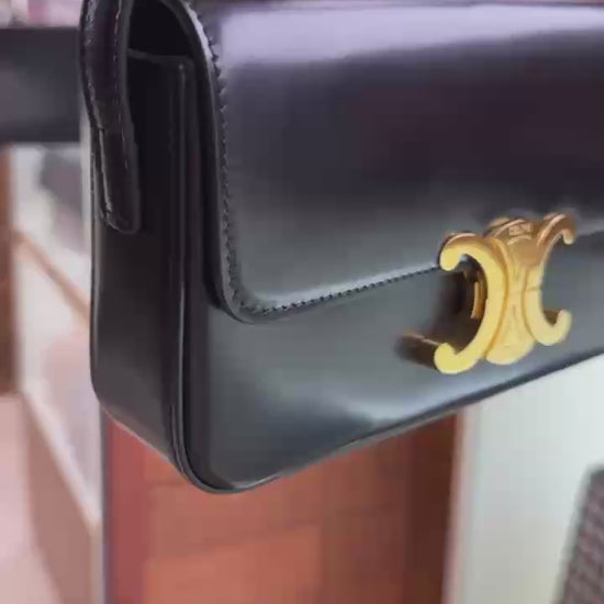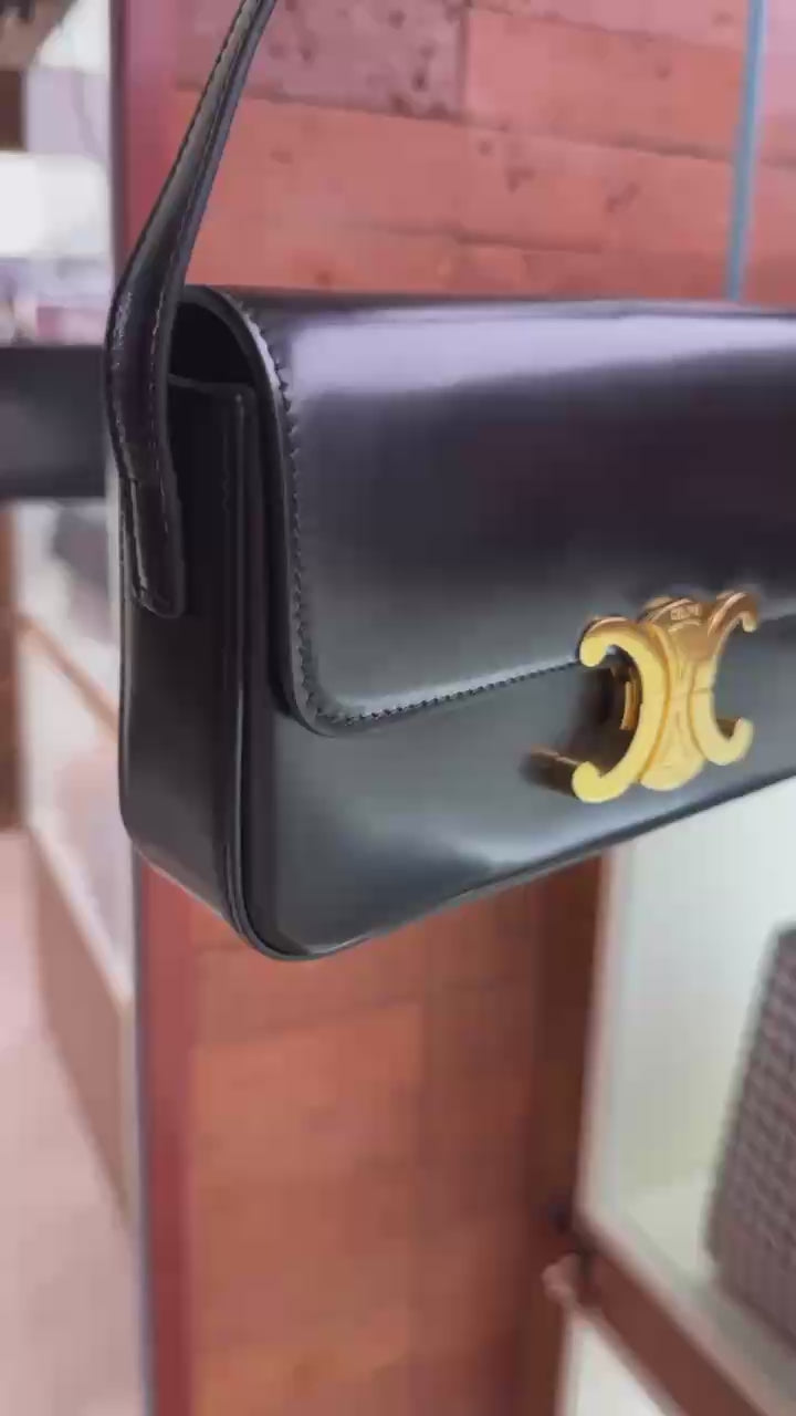 Pre-owned Certified Celine Triomphe Shoulder Black Calfskin with Golden Hardware, w/ dust bag