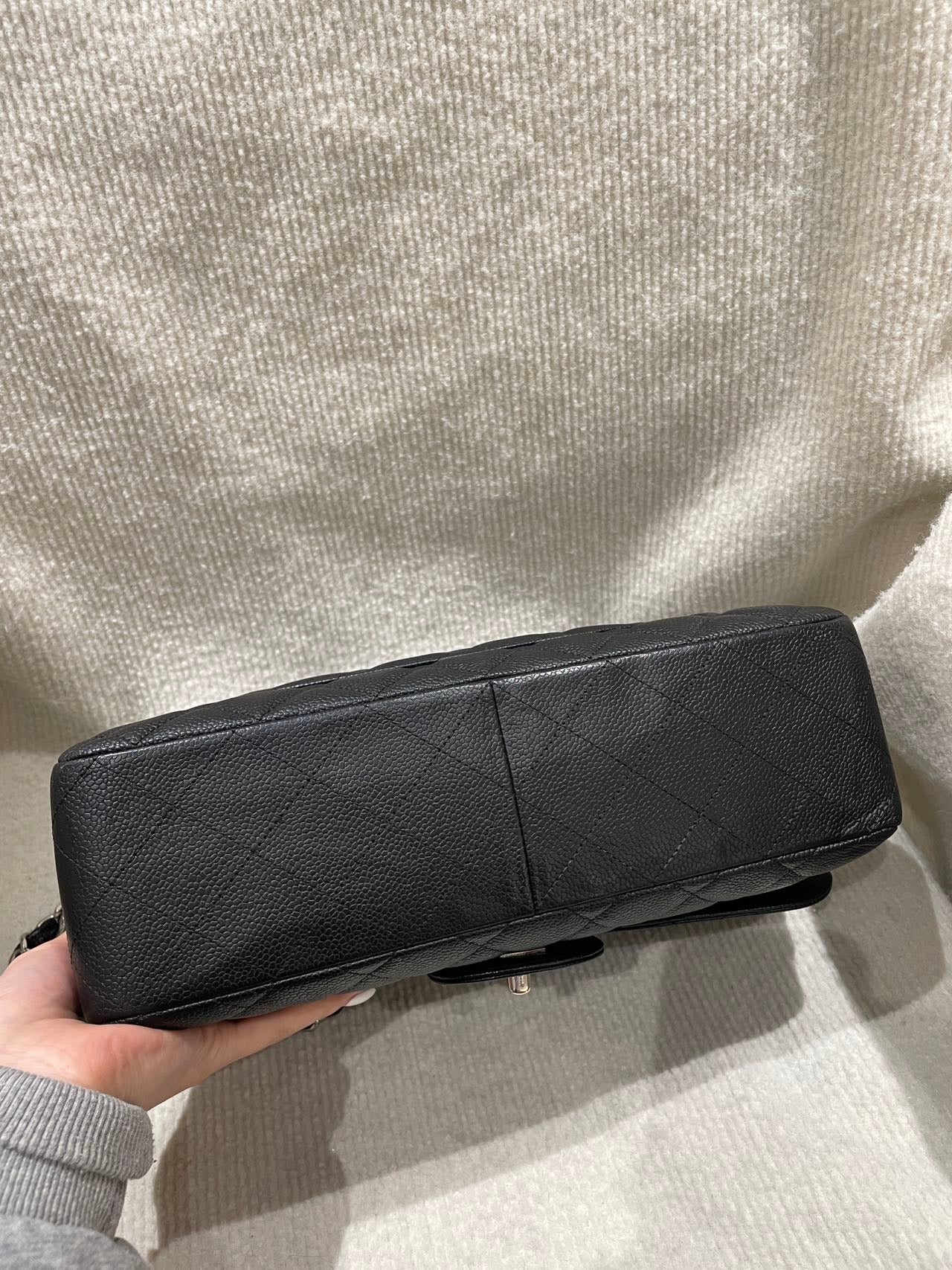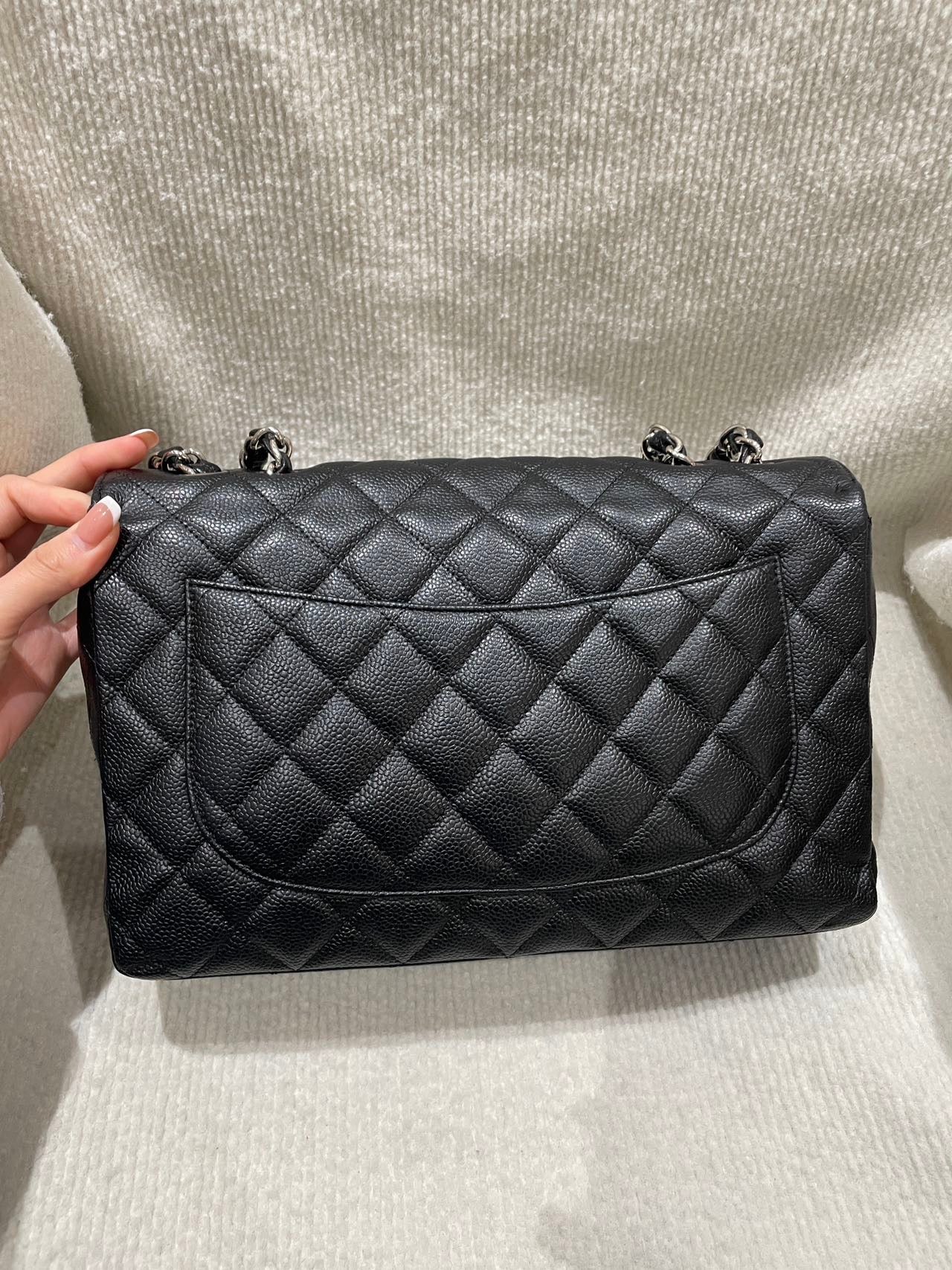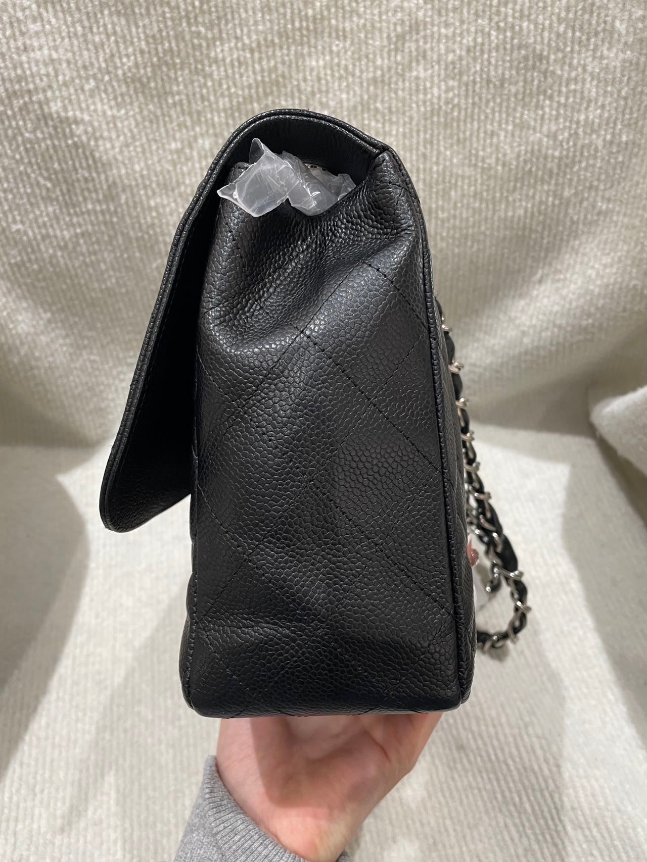 Pre-owned Certified Chanel CF Single Flap Jumbo Black Caviar Leather with Silver Hardware, 2008-2009, w/ Chanel dust bag, sticker inside