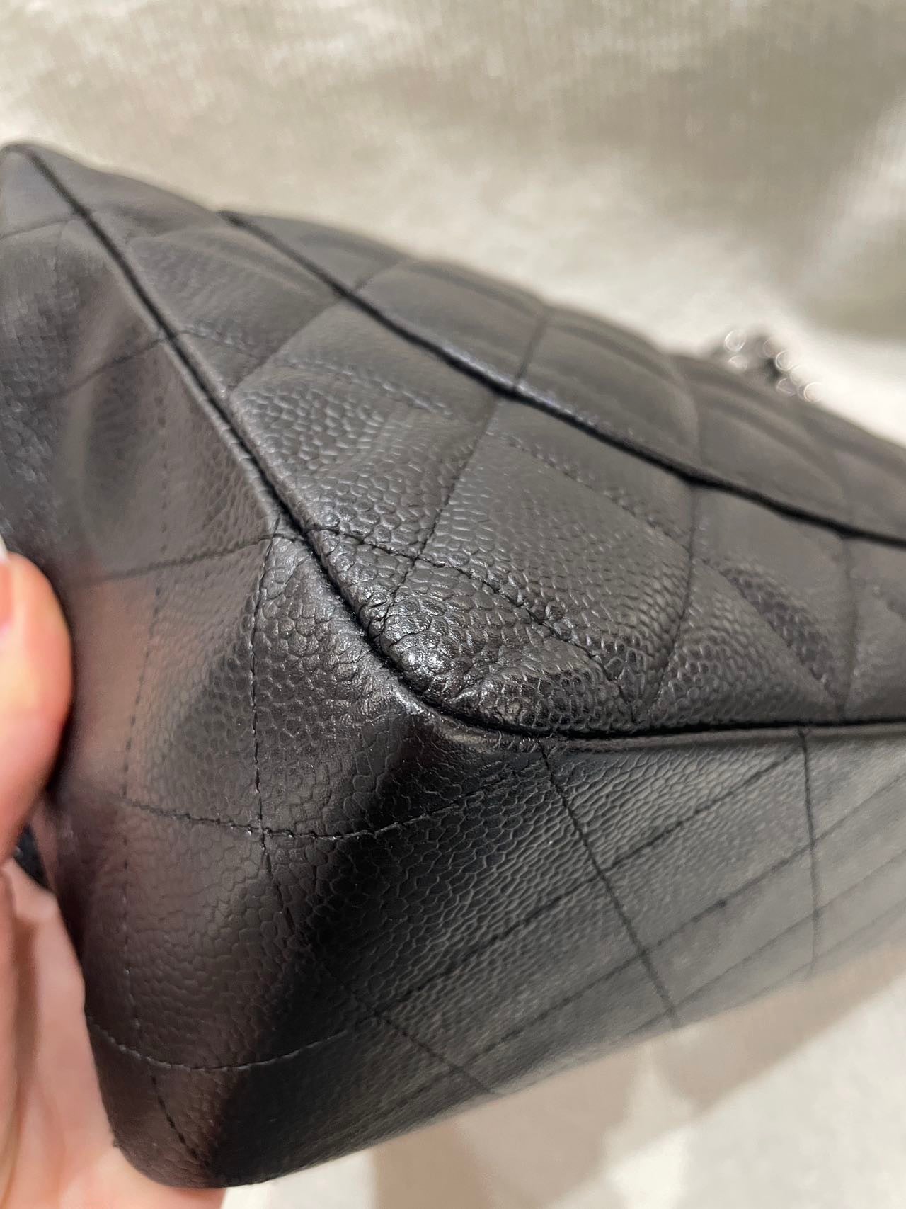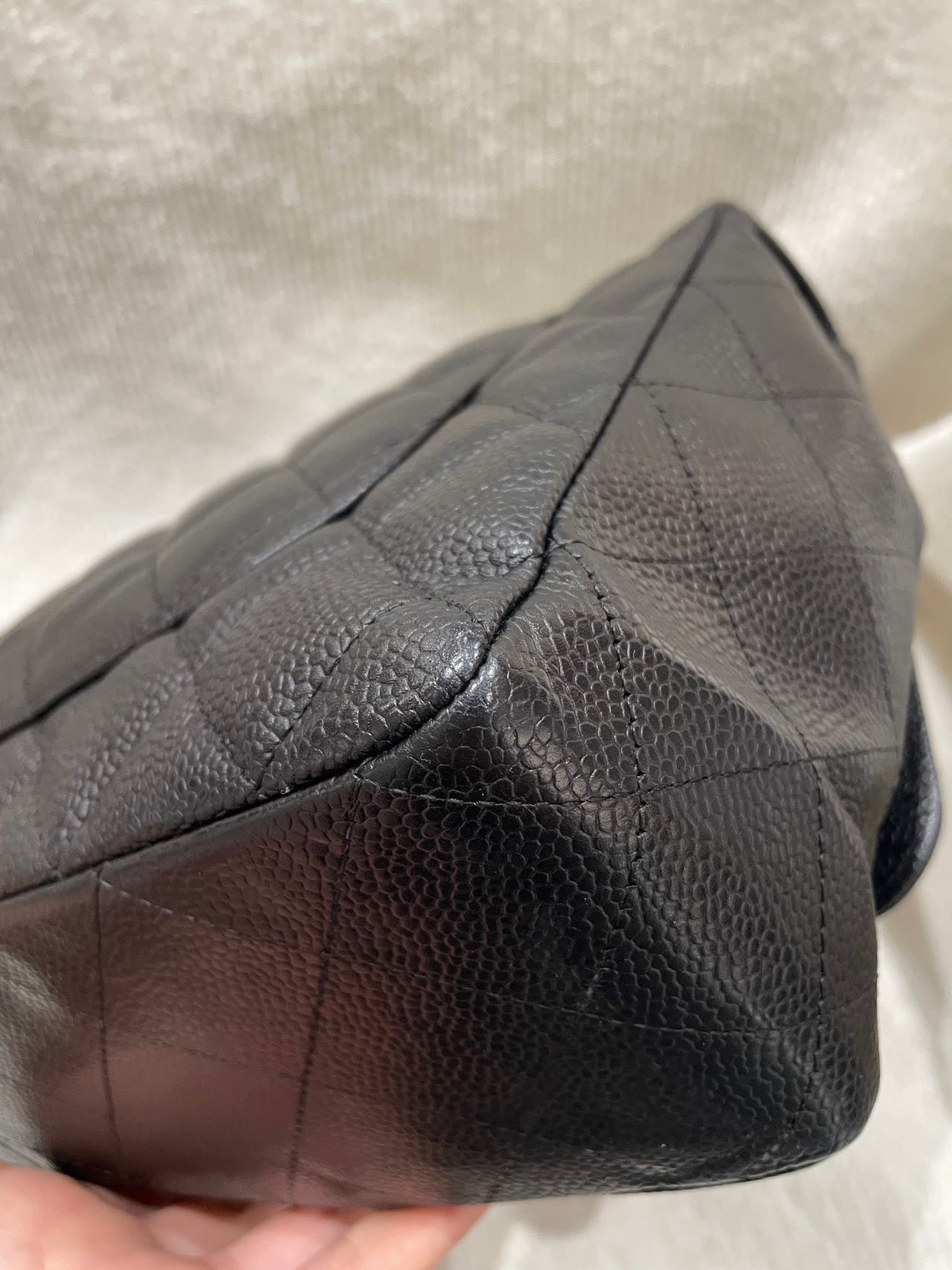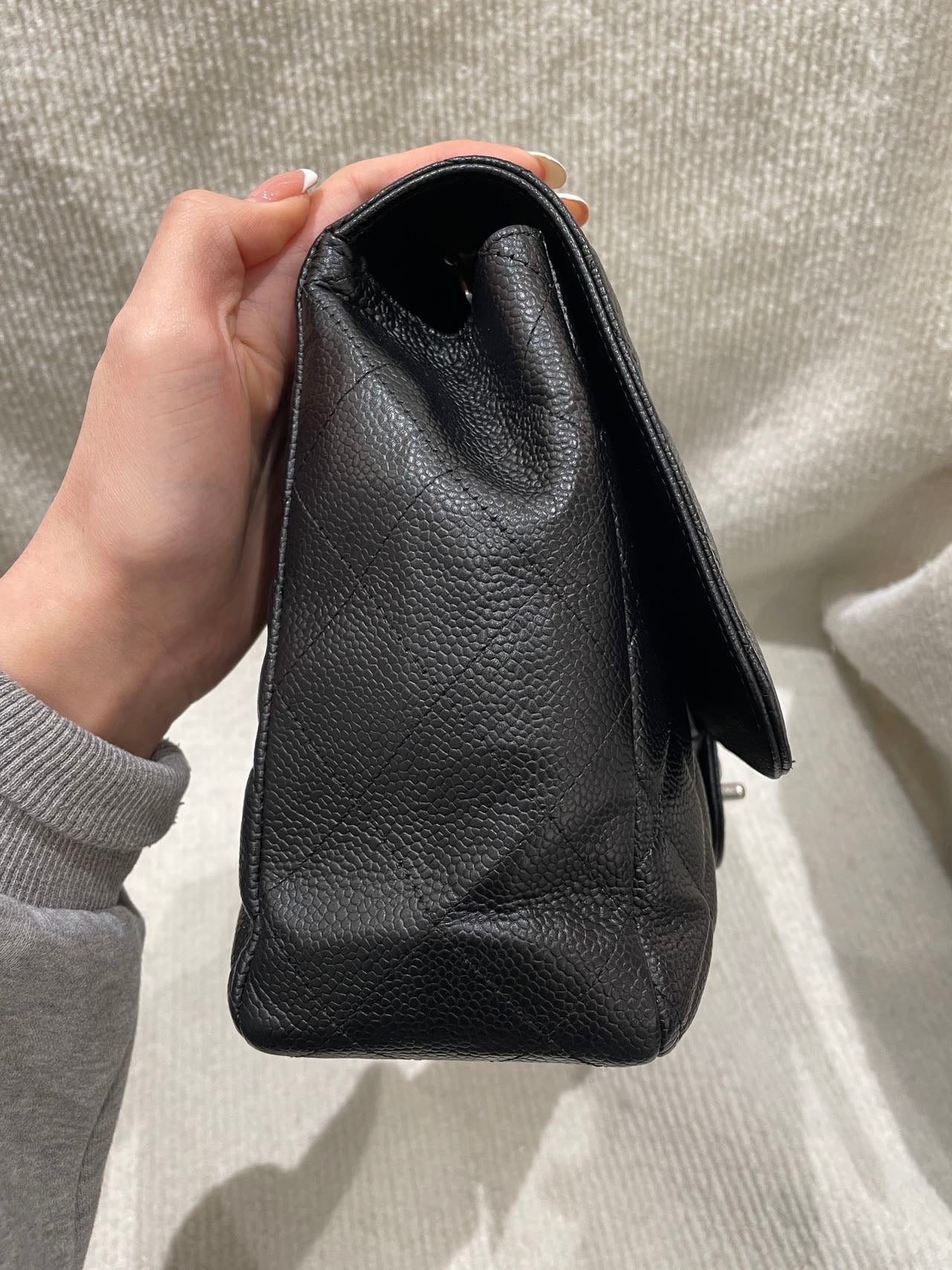 Pre-owned Certified Chanel CF Single Flap Jumbo Black Caviar Leather with Silver Hardware, 2008-2009, w/ Chanel dust bag, sticker inside