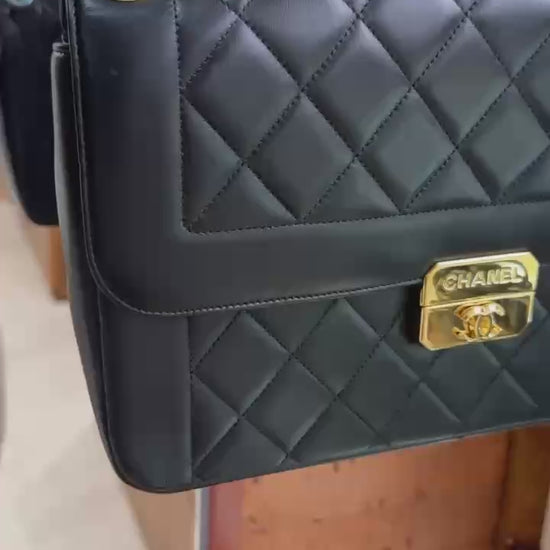 Pre-owned Certified Chanel Chic With Me Flap in Black Lambskin with Golden Hardware, 2014-2015, w/ Full set - Chanel Card, Box, Dust Bag