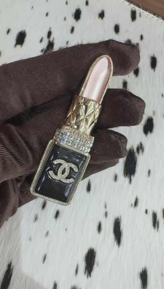 Pre-owned Certified Chanel Crystal Pink Lipstick Brooch