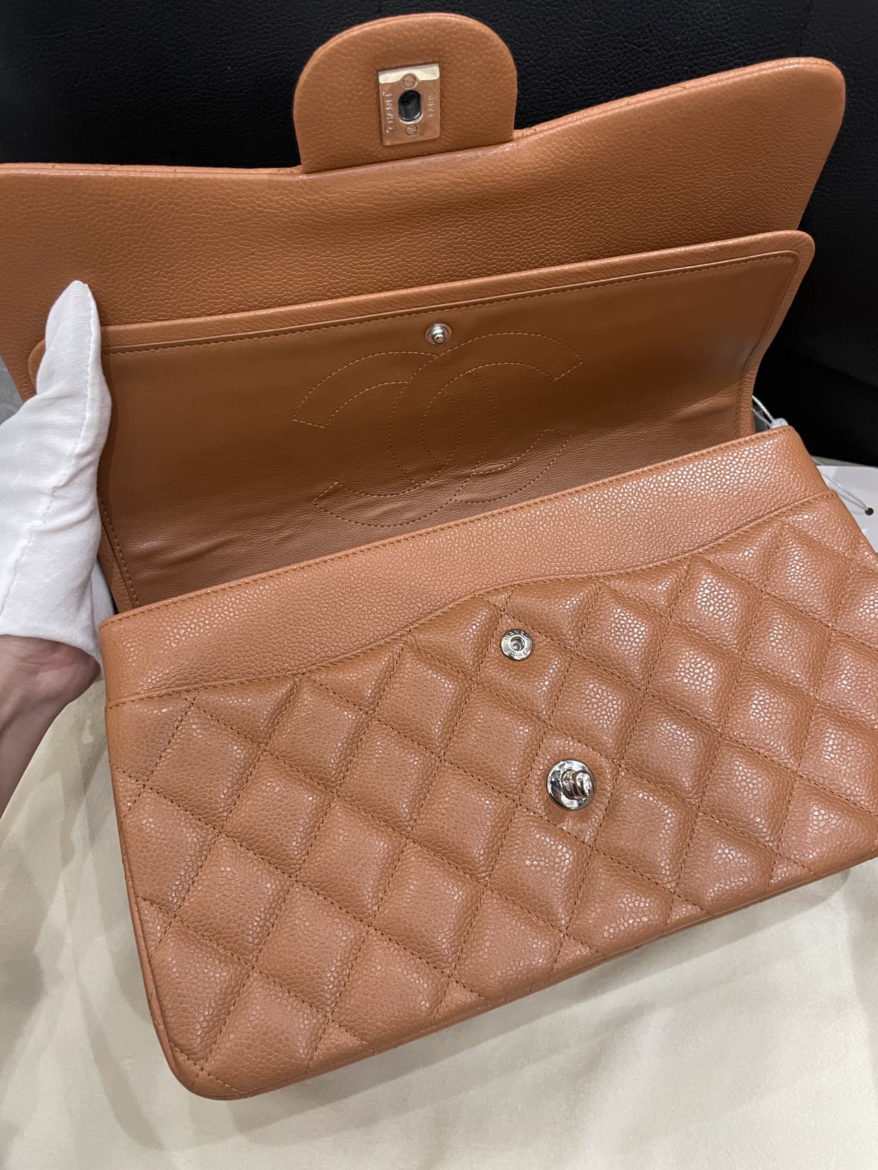 Pre-owned Certified Chanel Jumbo CF Double Classic Flap in Brown Caviar Leather with Silver Hardware, 2011-2012 , w/ Full Set