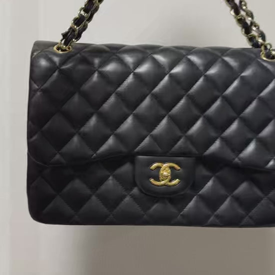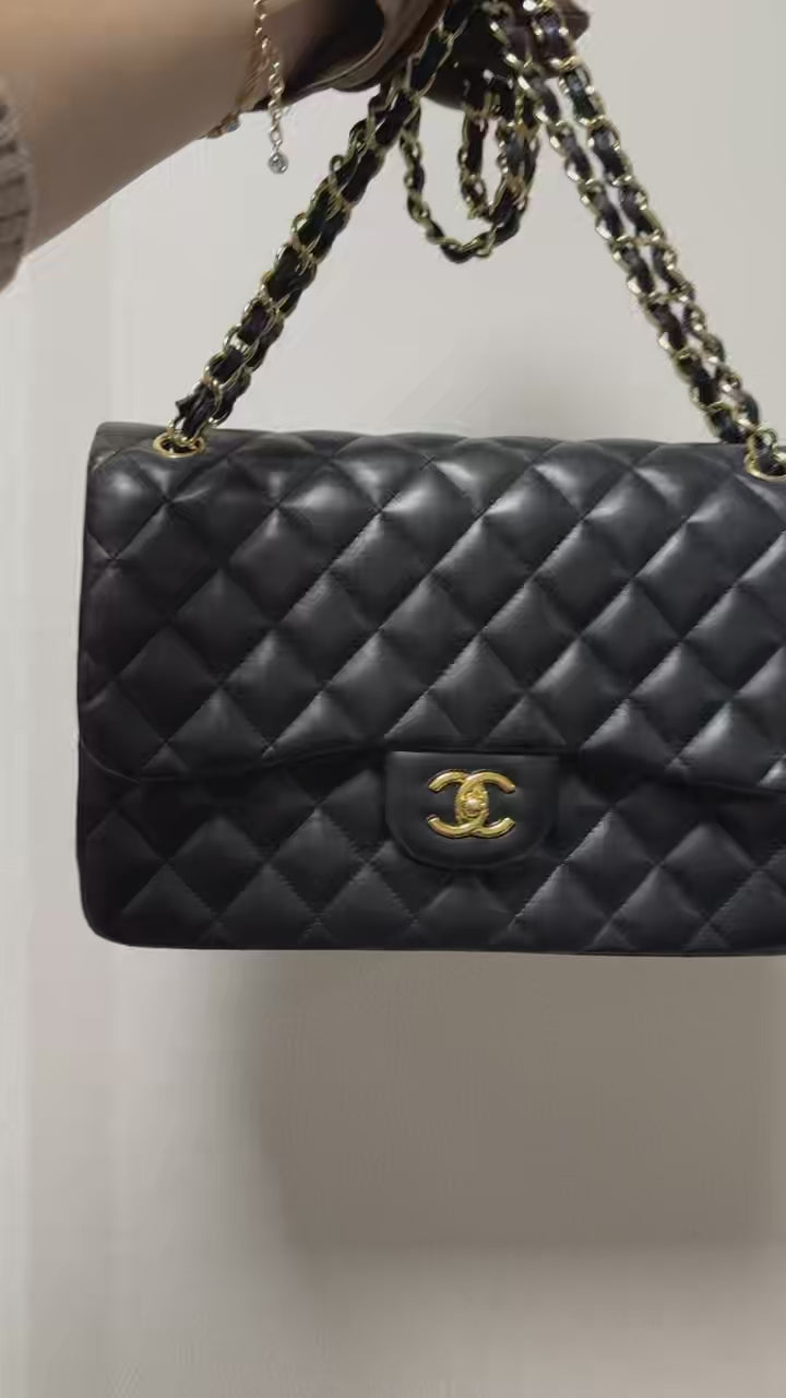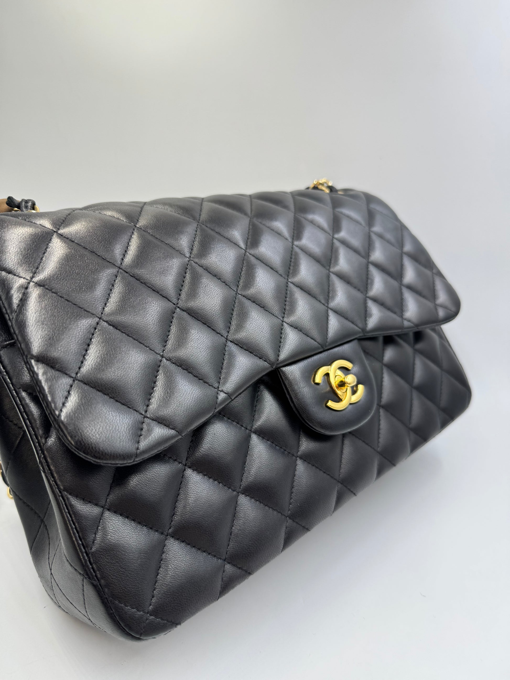 Pre-owned Certified Chanel Jumbo CF Double Flap in Black Lambskin with Golden Hardware, 2014, w/ Full Set