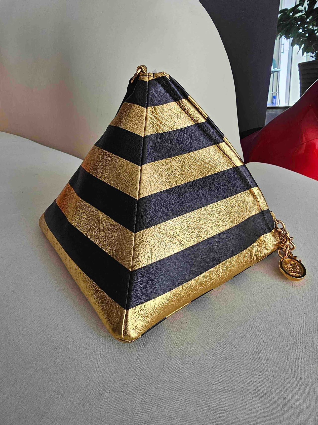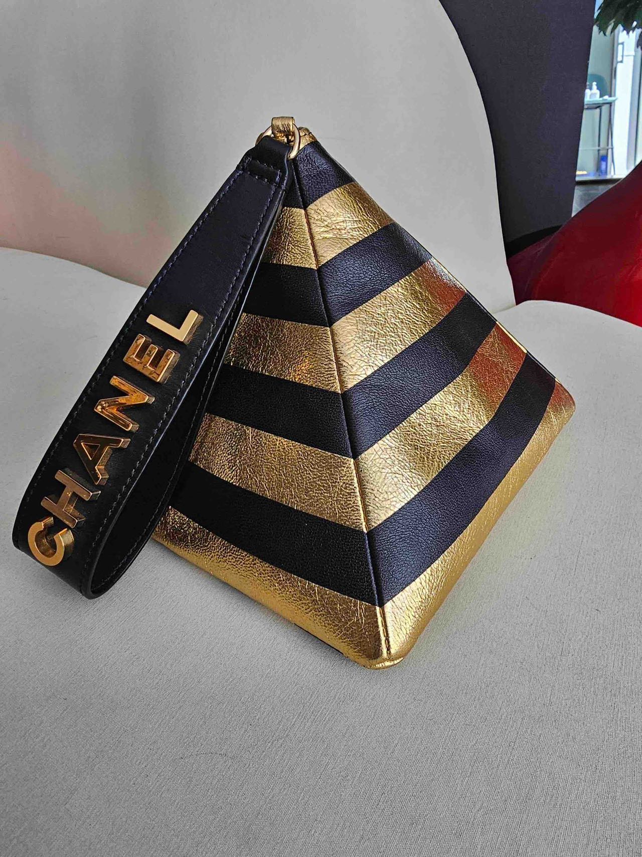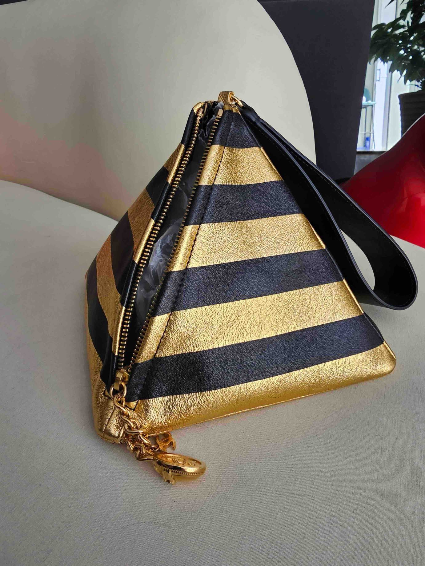 Pre-owned Certified Chanel Kheops Pyramid Bag in Gold and Black Lambksin with Golden Hardware, 2019 pre-fall, w/ card, dust bag