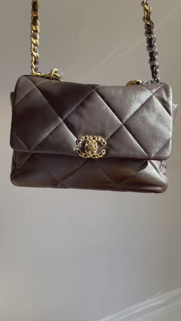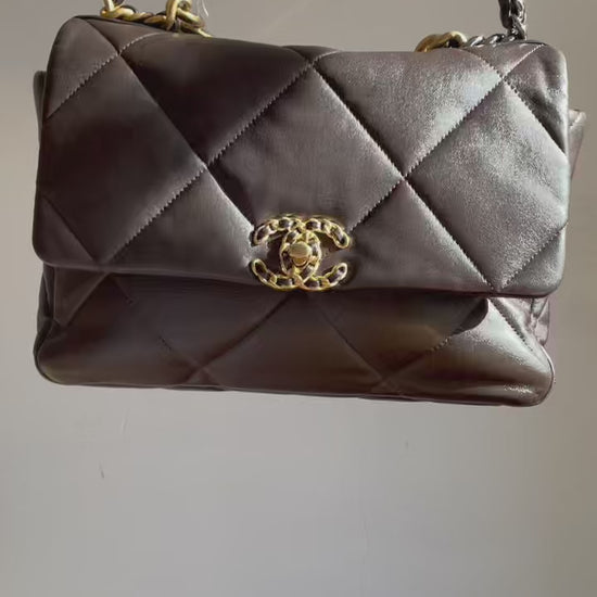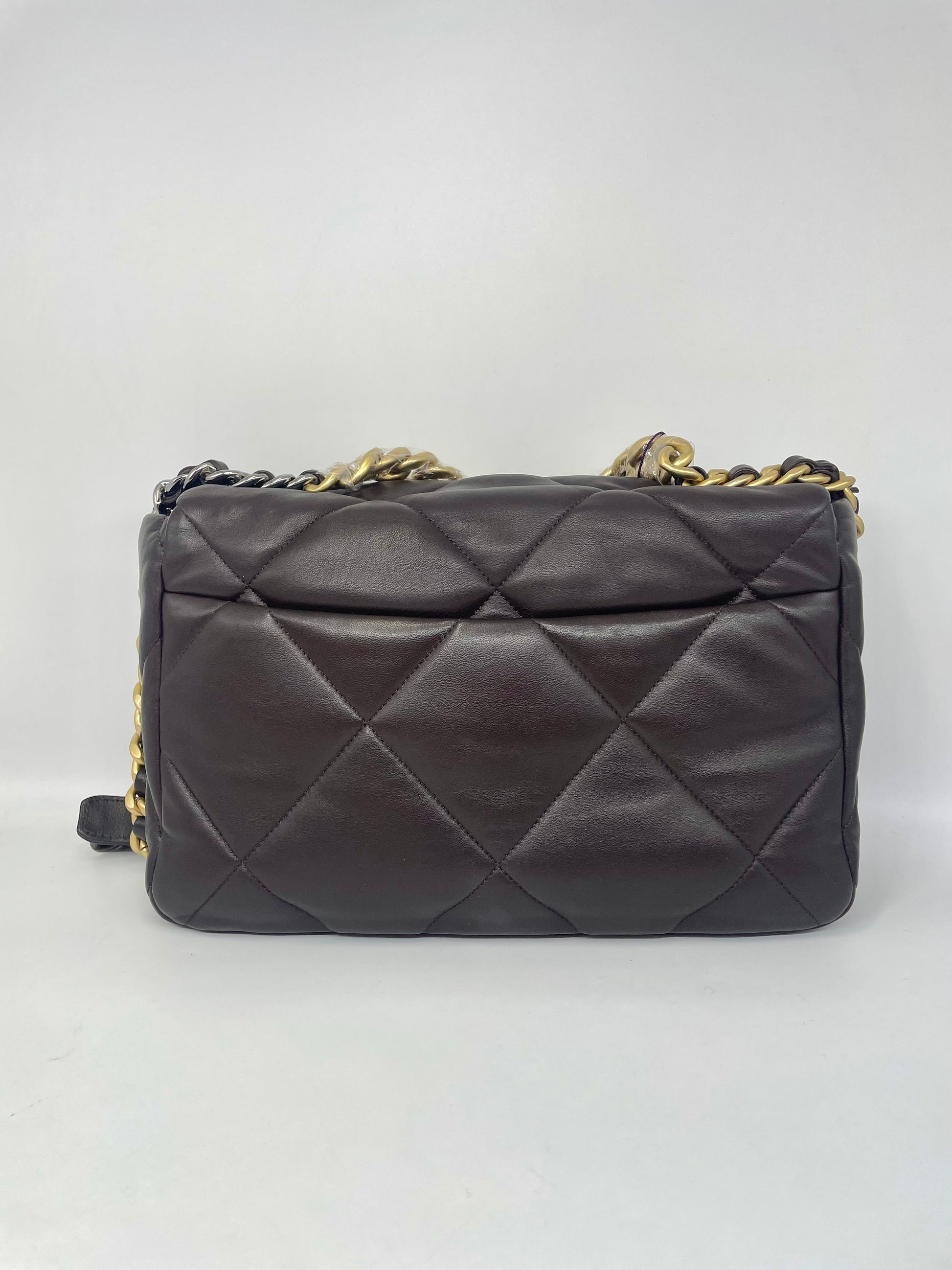 Pre-owned Certified Chanel Medium 19Bag in Dark Chocolate Brown Lambskin with Golden Hardware, 2021 microchipped, w/ Full Set