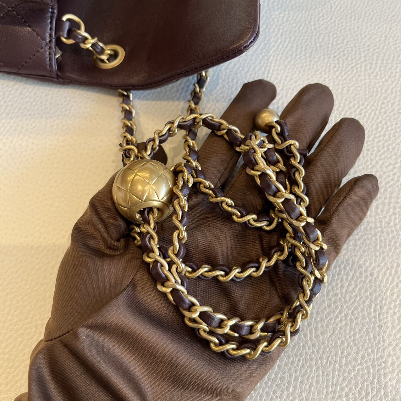 Pre-owned Certified Chanel Mini CF Rectangle Pearl Crush in Deep Burgundy Brown Lambskin with Golden Hardware, 2025 Microchipped, w/ full set