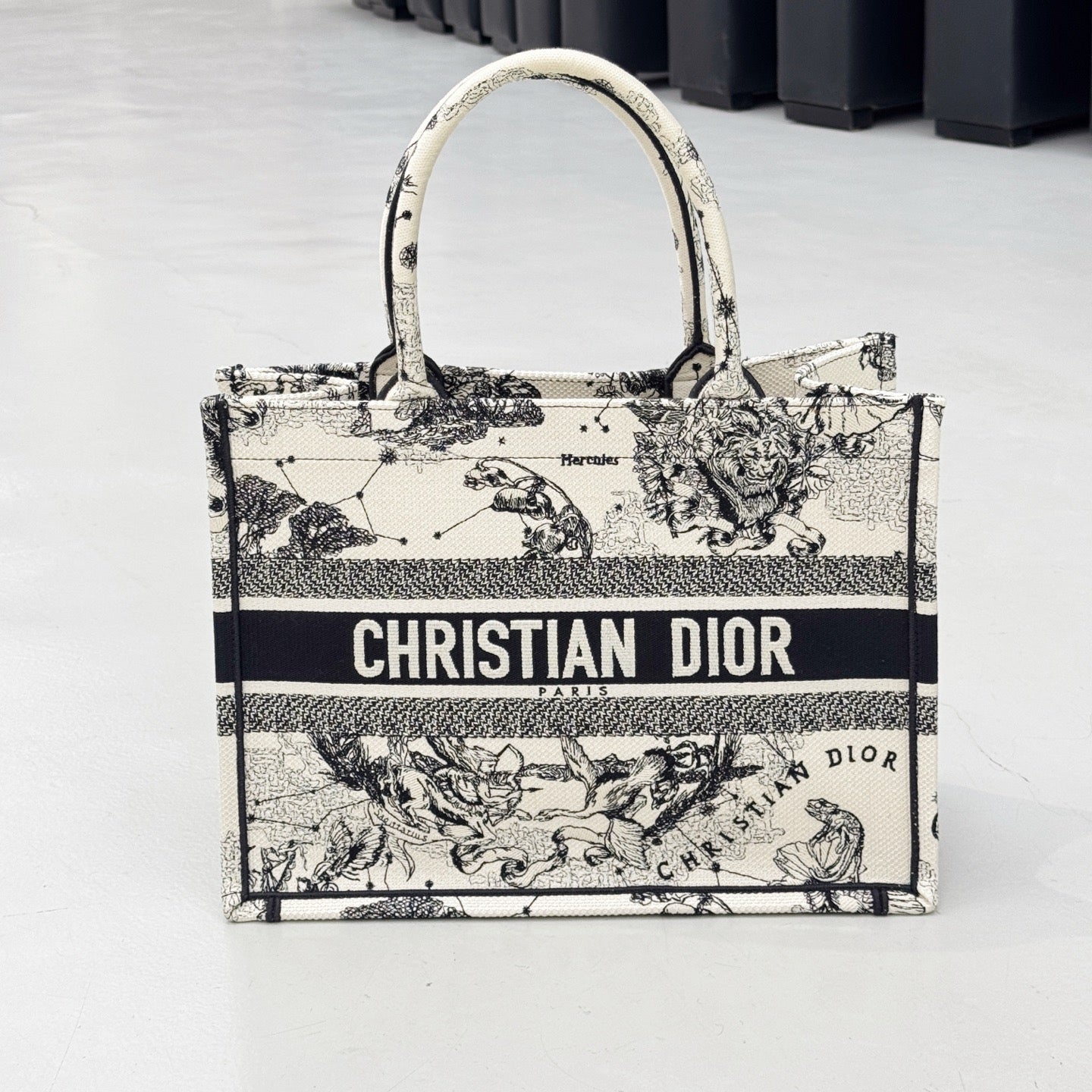 Pre-owned Certified Dior Book tote MM with Black and White Zodiac Embroidery, 2021, w/ dust bag