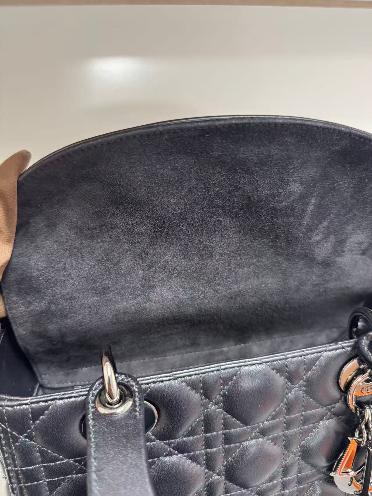 Pre-owned Certified Dior Medium Lady Dior Black Cannage Quilted Lambskin with Shiny Black Hardware, 2022, w/ Dior dust bag, leather strap