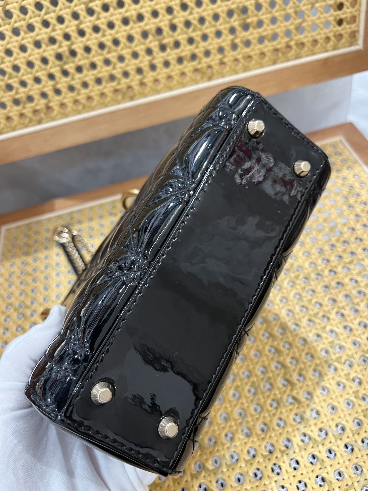 Pre-owned Certified Dior Mini Lady Dior in Black Patent Leather with Golden Hardware, 2020, w/ Full set
