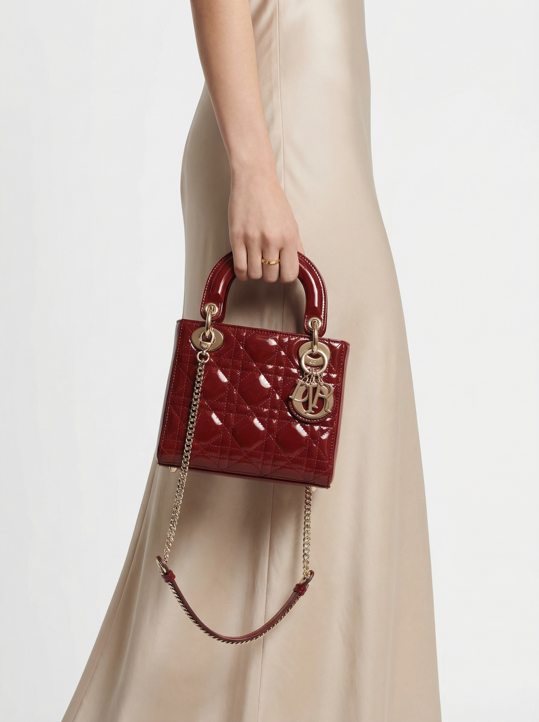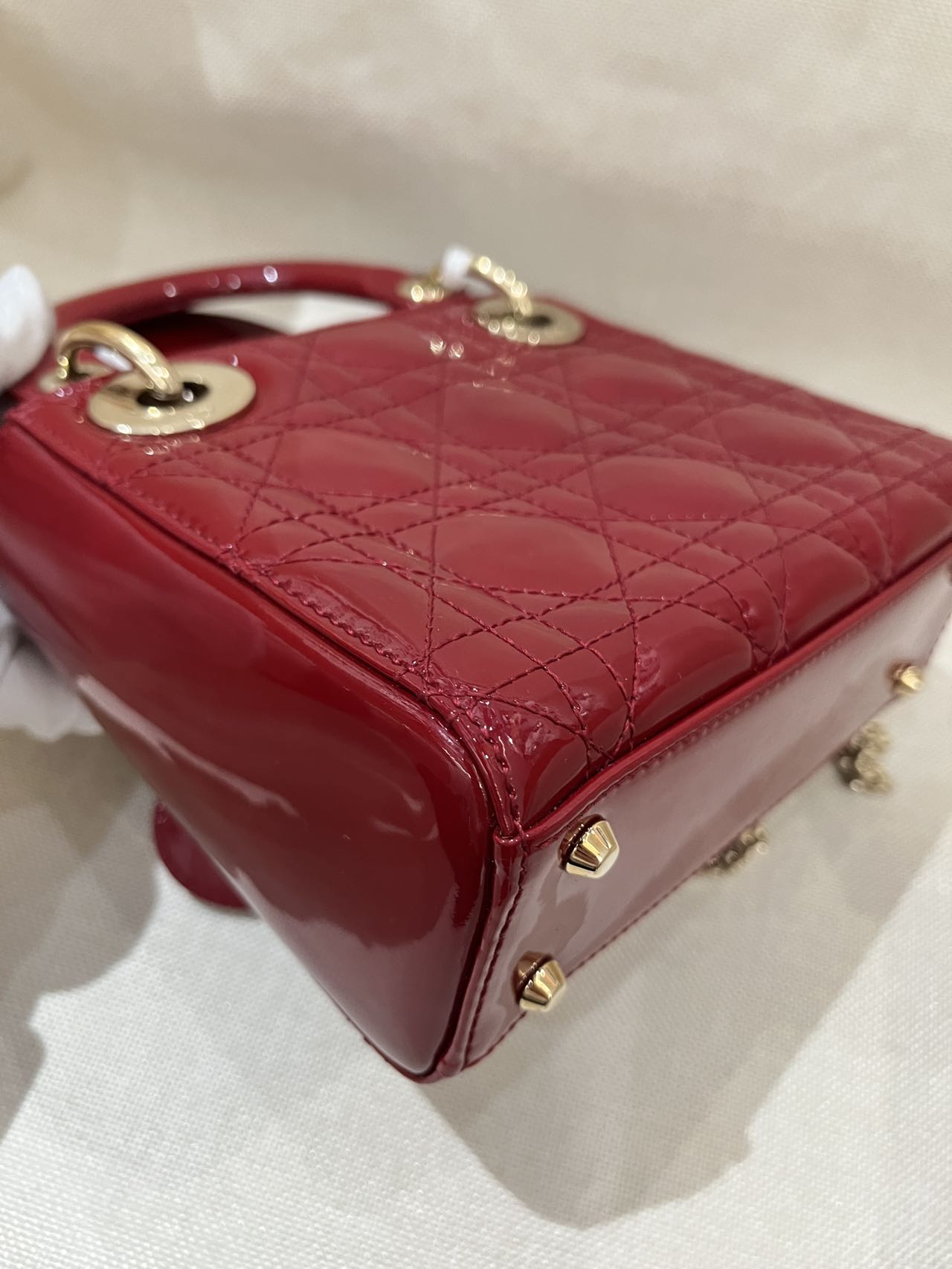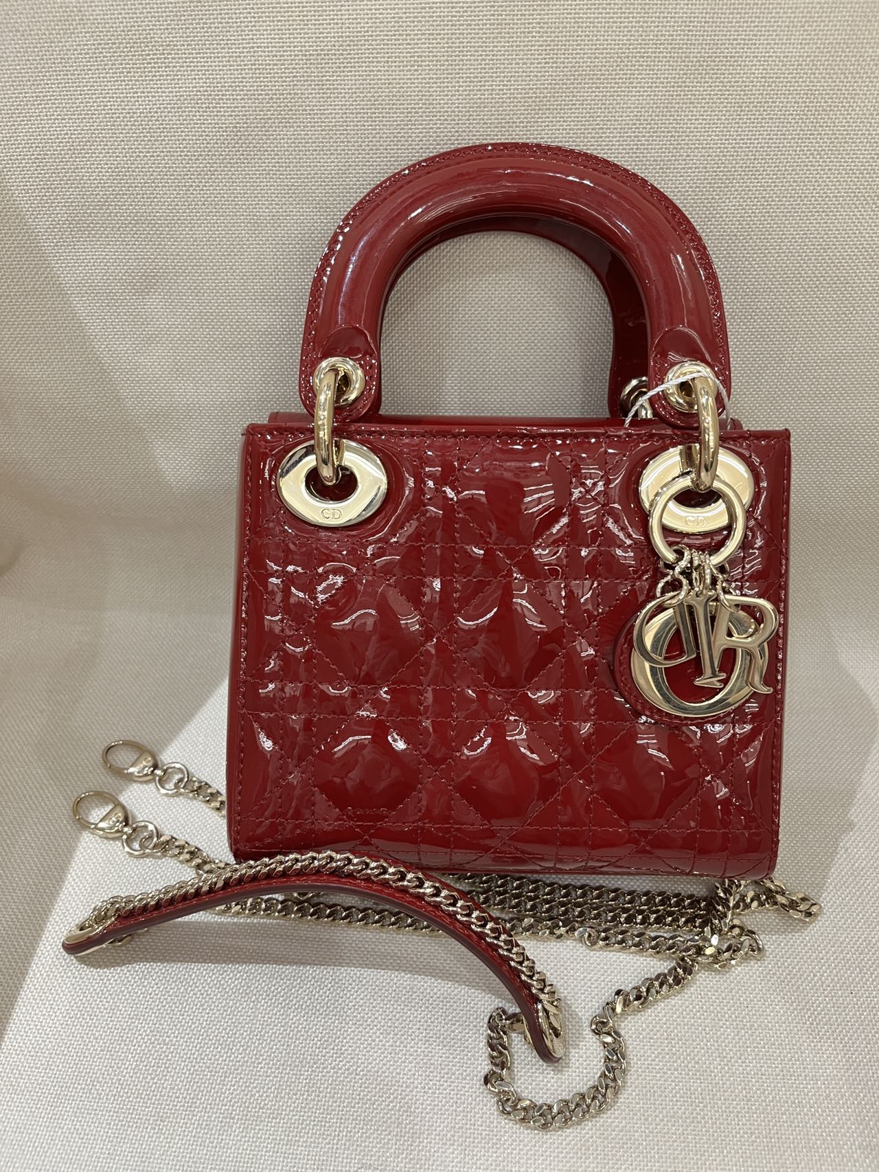 Pre-owned Certified Dior Mini Lady Dior in Dark Cherry Red Patent Leather with Light Golden Hardware, 2018, w/ Full Set